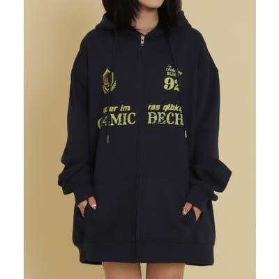 ゲームロゴ配置と、印象的なシールドモチーフがポイントのビッグシルエットZIPパーカー。