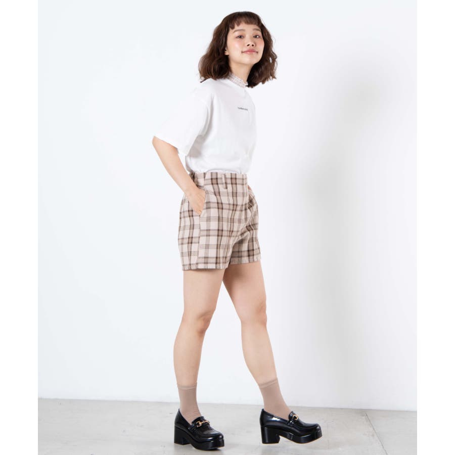 シンプルなデザインなので、花柄やチェック柄など柄物ボトムとのコーデもバランス良くキマります!