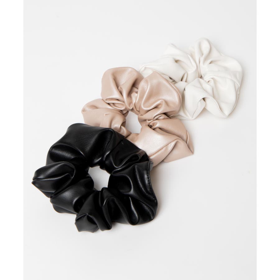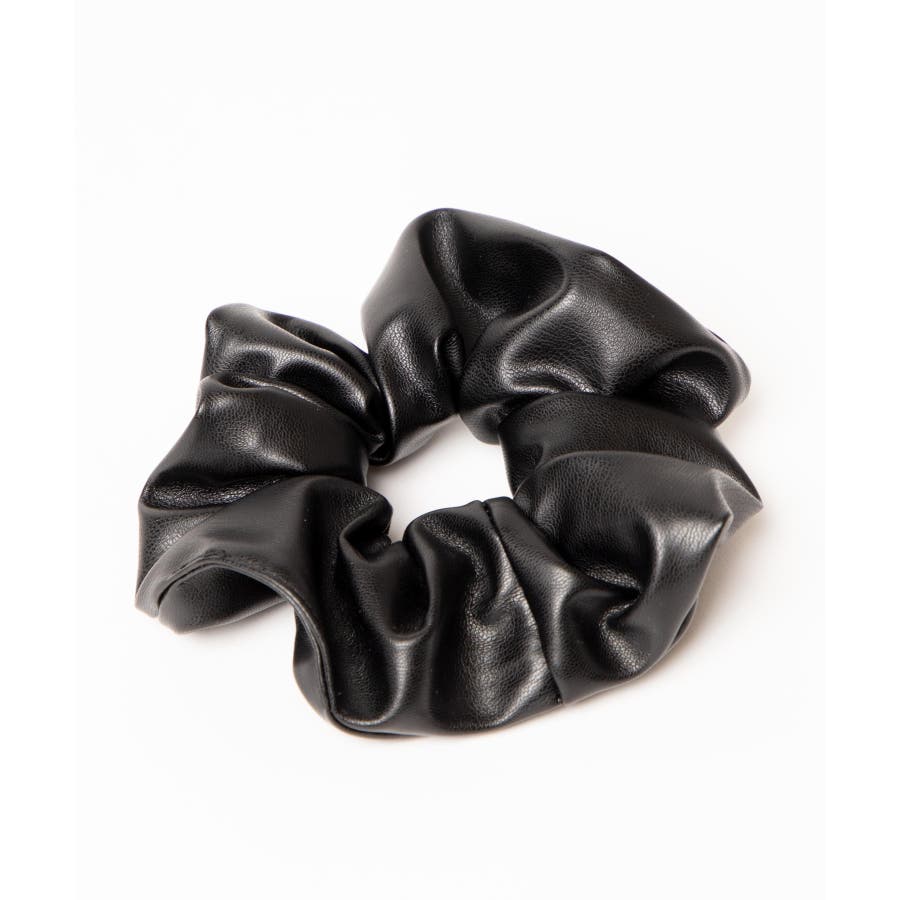 秋冬にぴったりのフェイクレザー素材のシュシュ。