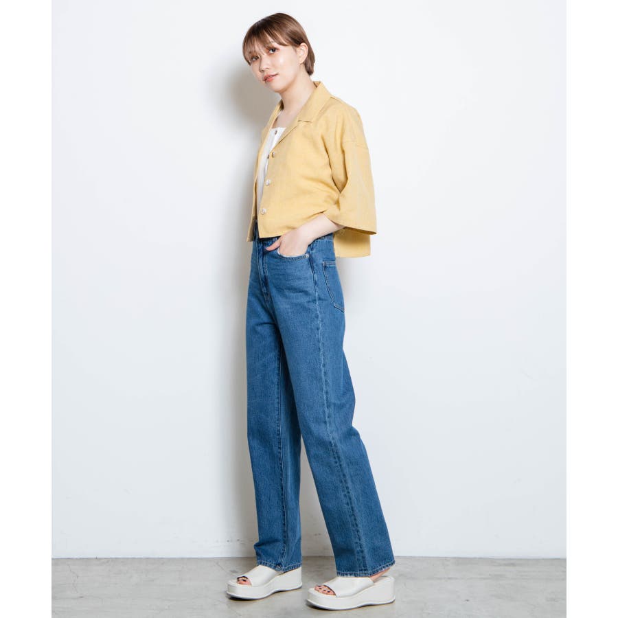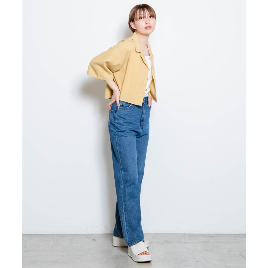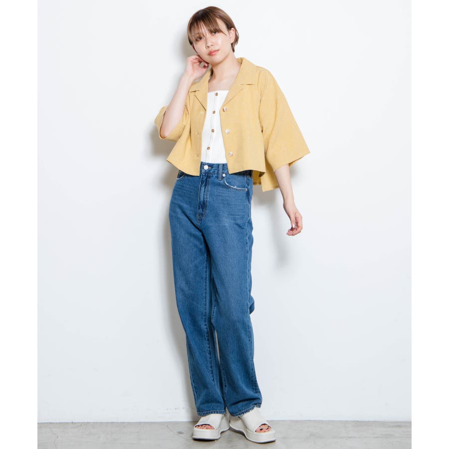 短めの丈でハイウエストのボトムスとのバランスが丁度よく着こなせます♪
