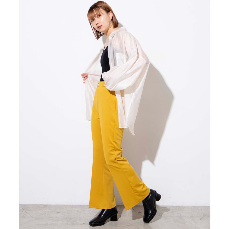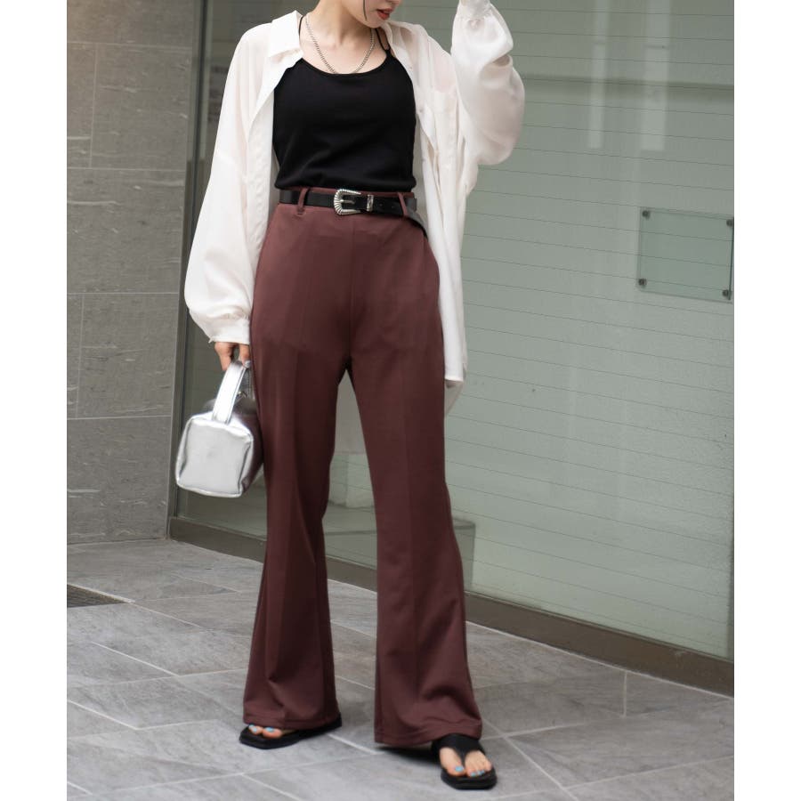 縦長のすっきりとしたシルエットに仕上げたフレアパンツ。