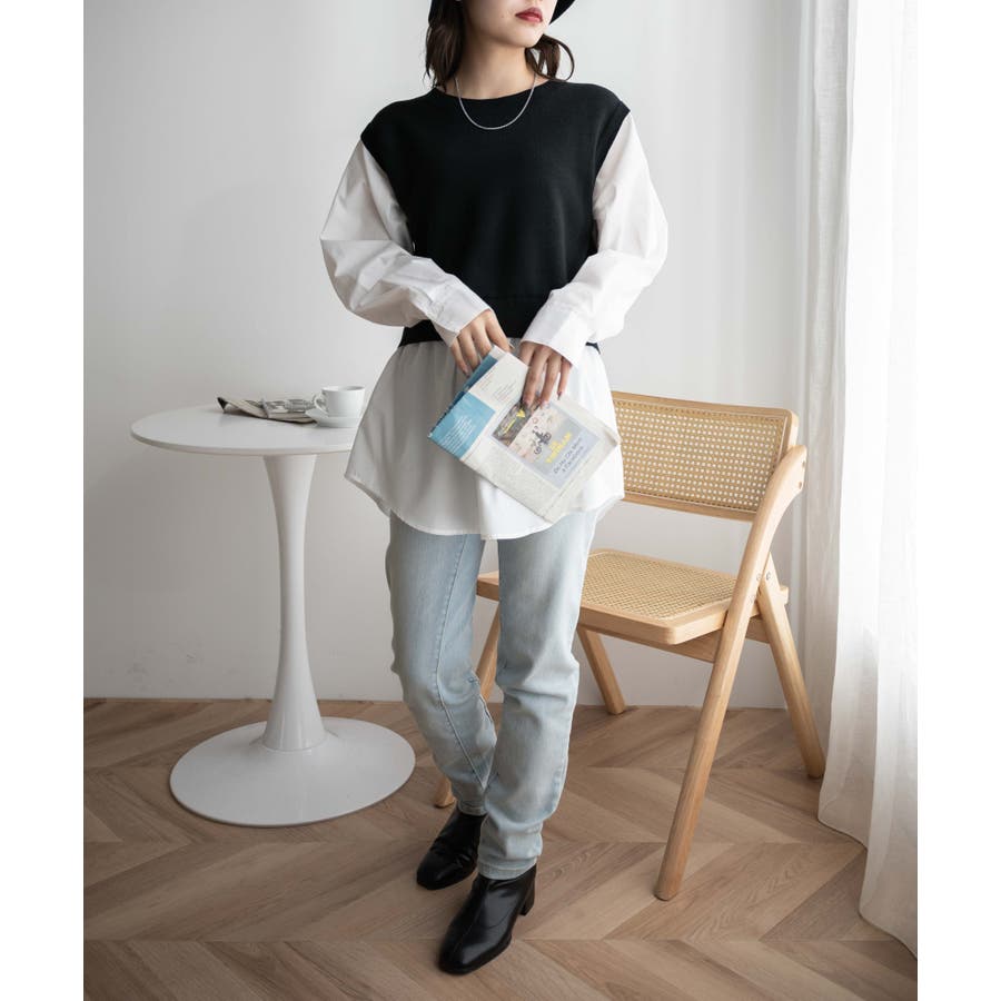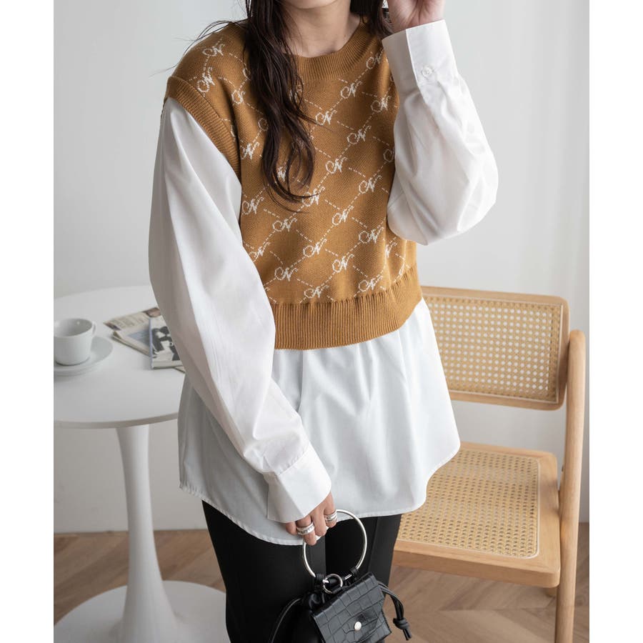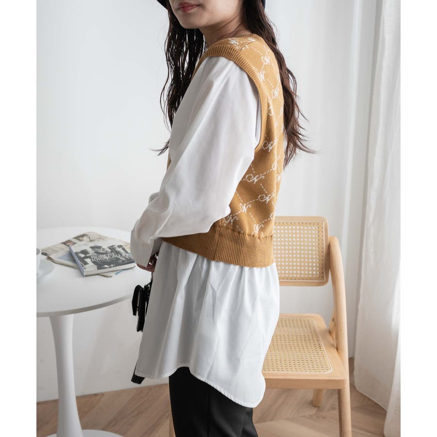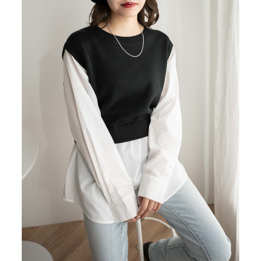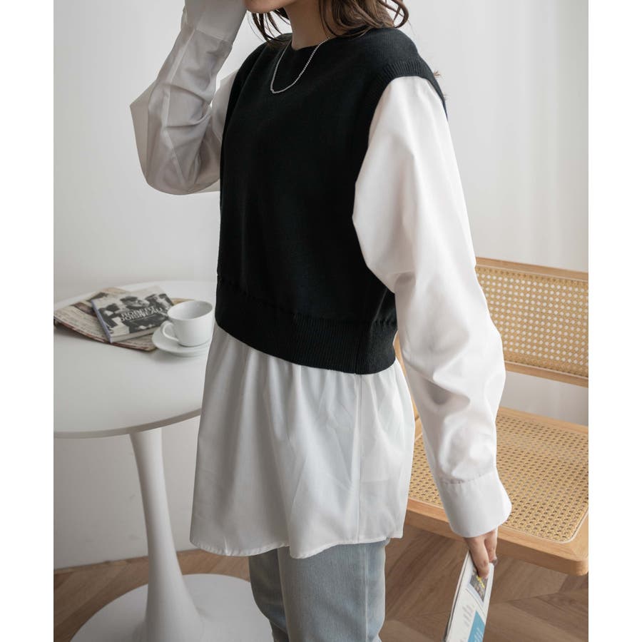 シャツレイヤードニットベスト 秋 冬 秋冬 秋服 秋ファッション 冬服 服 長袖 韓国 韓国ファッション