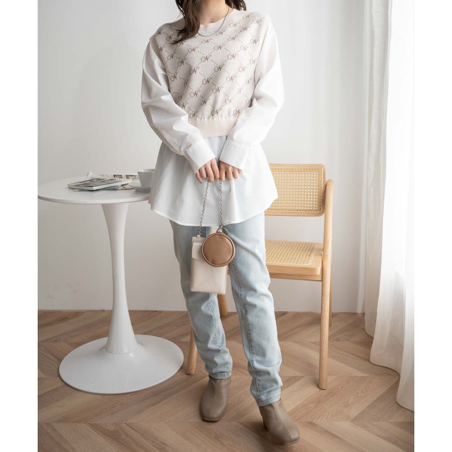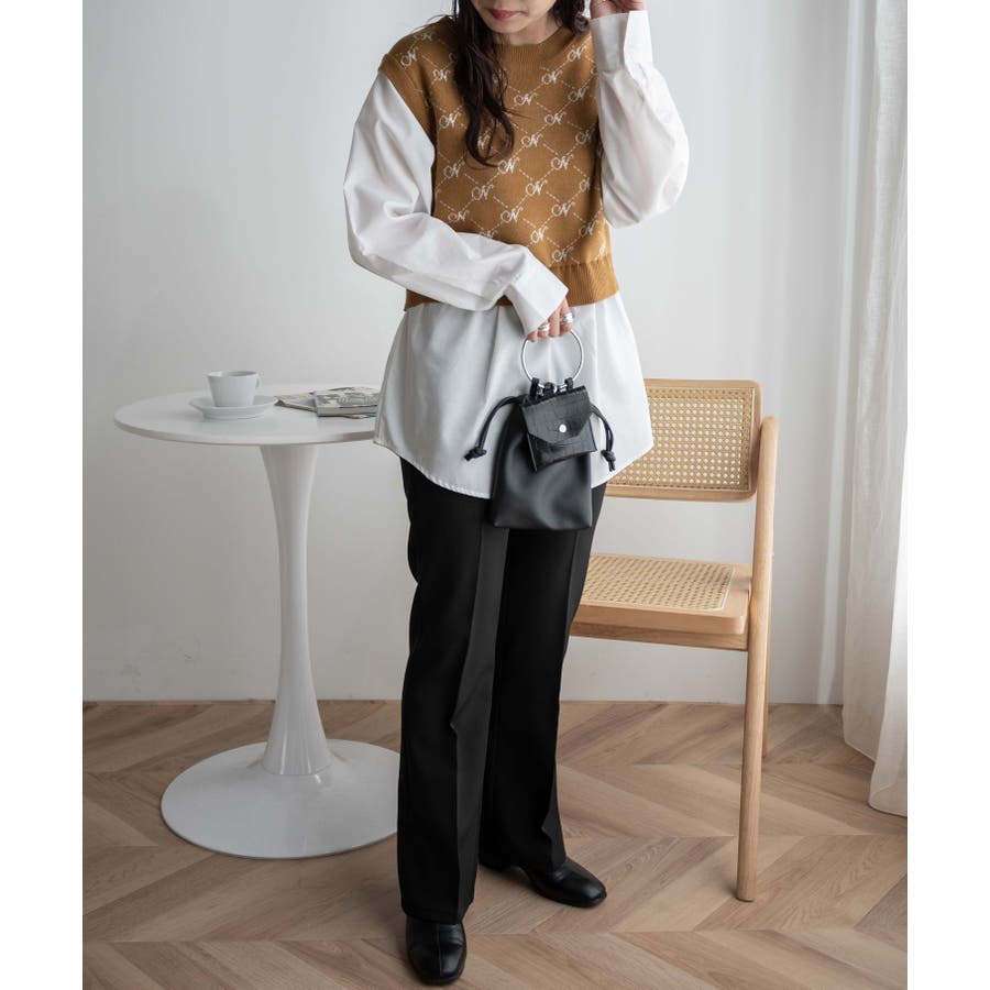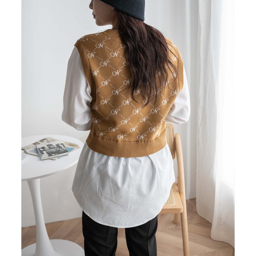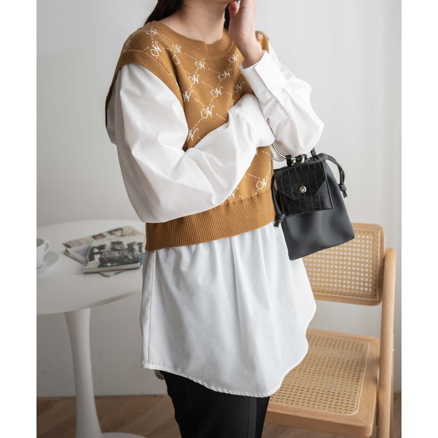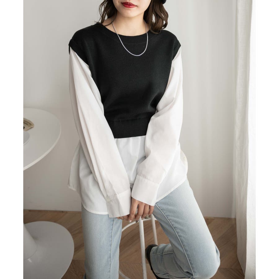 シャツレイヤードニットベスト 秋 冬 秋冬 秋服 秋ファッション 冬服 服 長袖 韓国 韓国ファッション