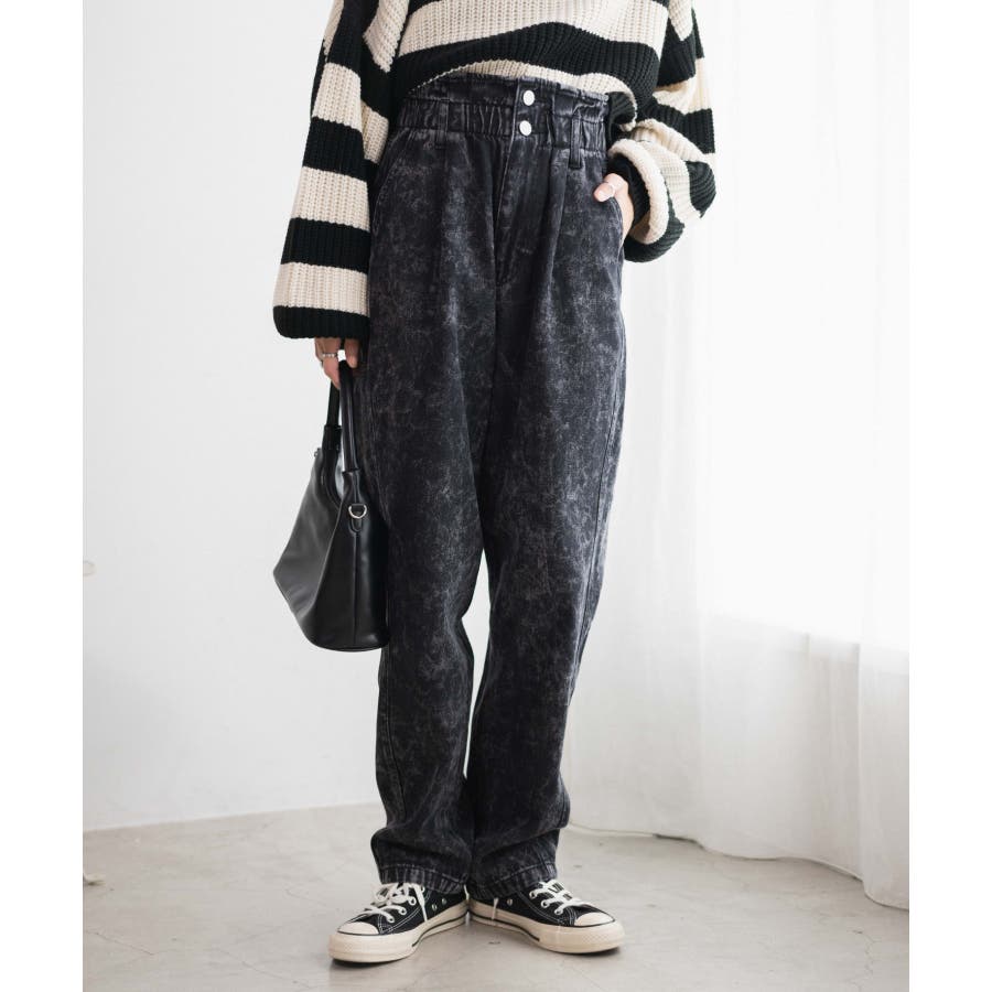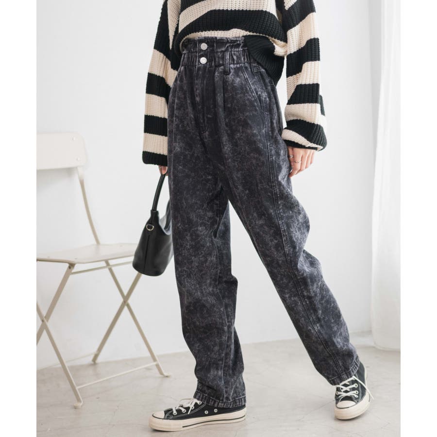 ウエストフリルデニムマムパンツ レディース 秋 冬 韓国 韓国ファッション 10代 20代 30代 40代 50代 WEGO ウィゴー ガーリー カジュアル フェミニン ギャル キャバ キャバ嬢 デート オシャレ パンツ マムパンツ 美脚効果