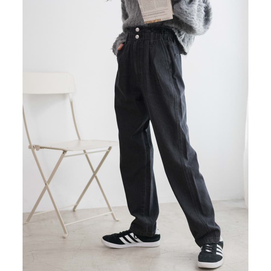 ウエストフリルデニムマムパンツ レディース 秋