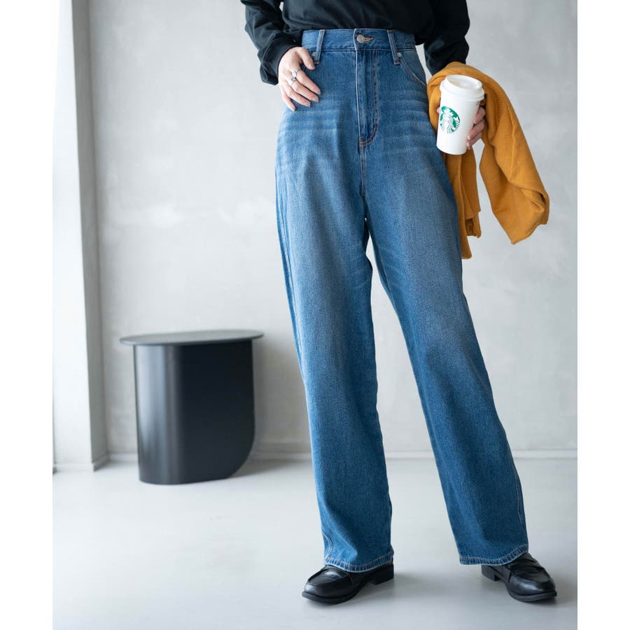 ルーズストレートデニムパンツ レディース 秋 冬 韓国 韓国ファッション 10代 20代 30代 40代 50代 WEGO ウィゴー ガーリー カジュアル フェミニン ギャル キャバ キャバ嬢 デート オシャレ パンツ 美脚 美脚効果 ストレート ストレートパンツ