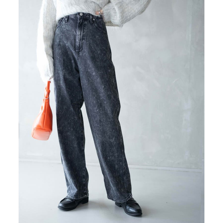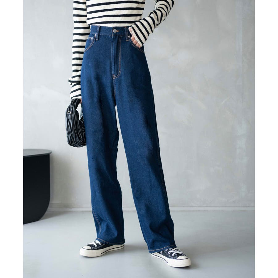 ウエストフィットデザイン&ルーズなストレートシルエット♡→ハイウエスト&腰のラインに沿ったパターンでスッキリした腰回り(特にサイド・バックからの見え方)→ヒップ~ワタリにゆとりを取りリラックス感ルーズストレートシルエットで、体のラインを拾わず足をきれいに見える!この2点の見せる部分・見せない部分の掛け合わせで美シルエット★着こなしやすい程よいヴィンテージ風の加工で、シンプルなスタイルも様になります。