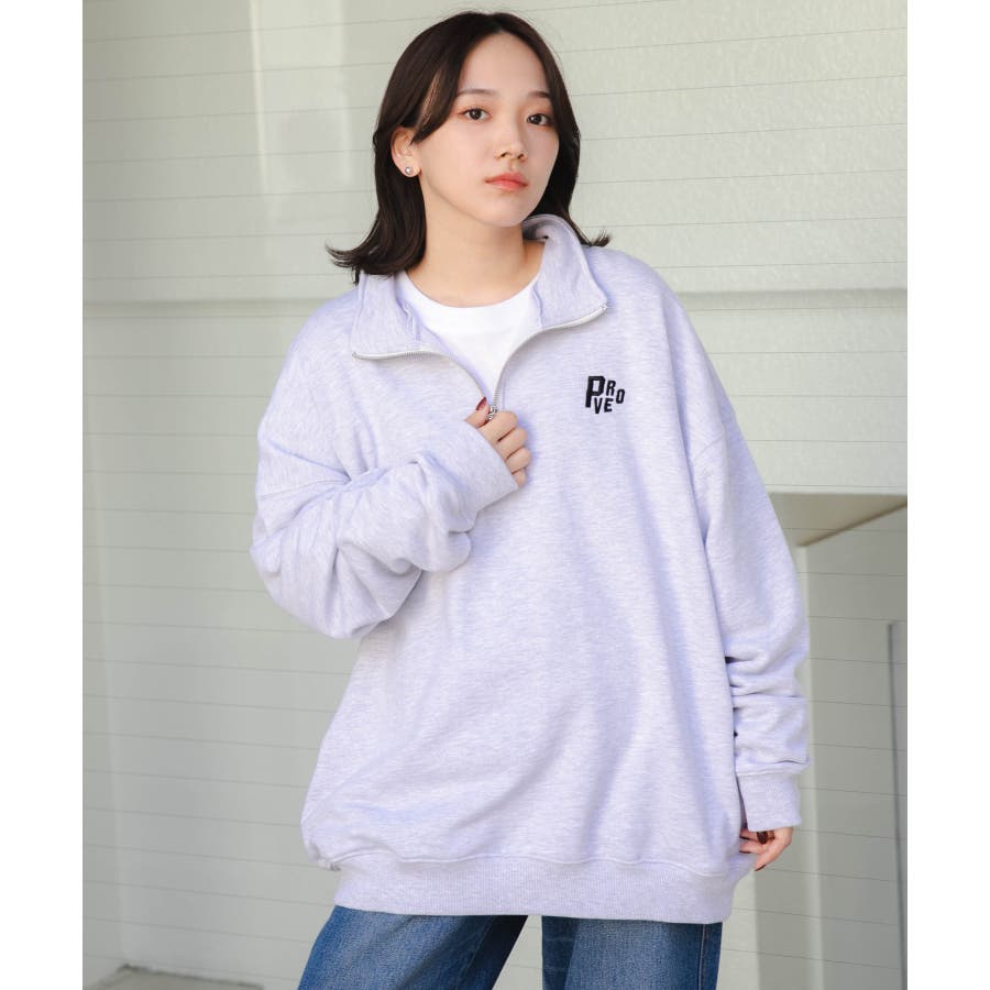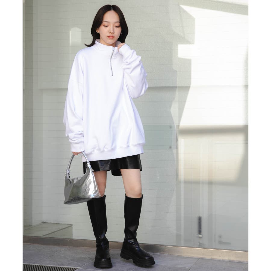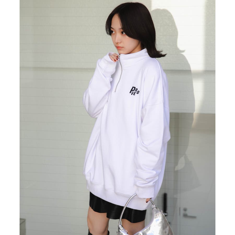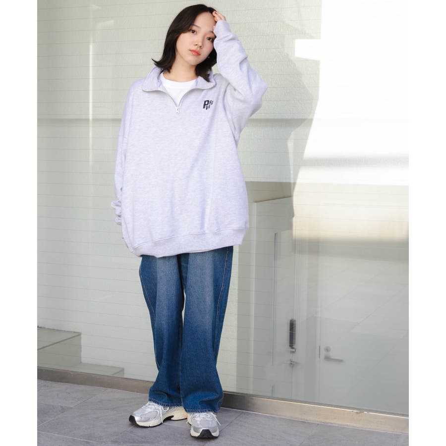 ハーフジップデザインに、オーバーサイズシルエットのトレンド感満載のトップスです。