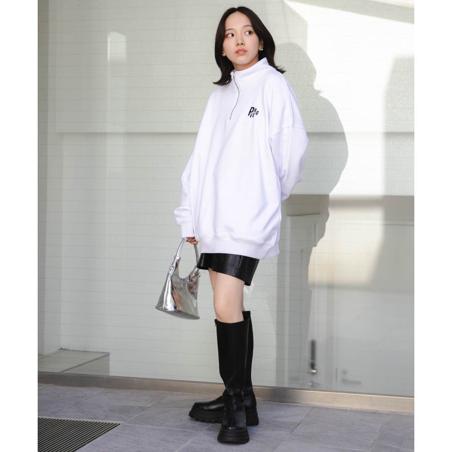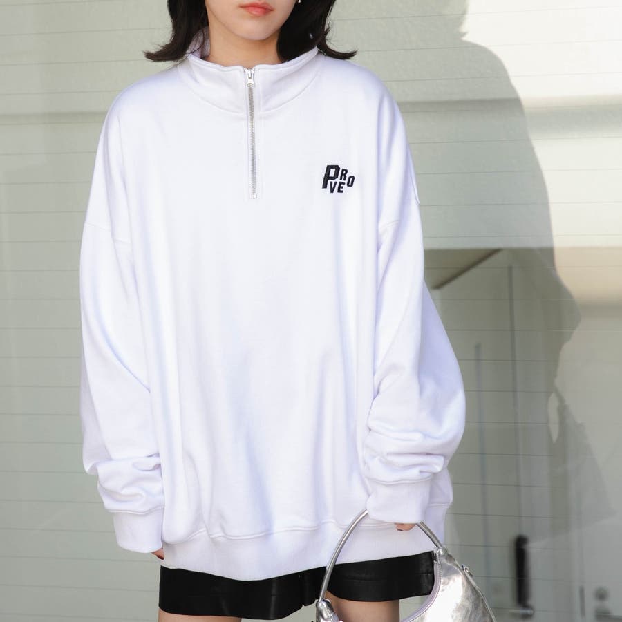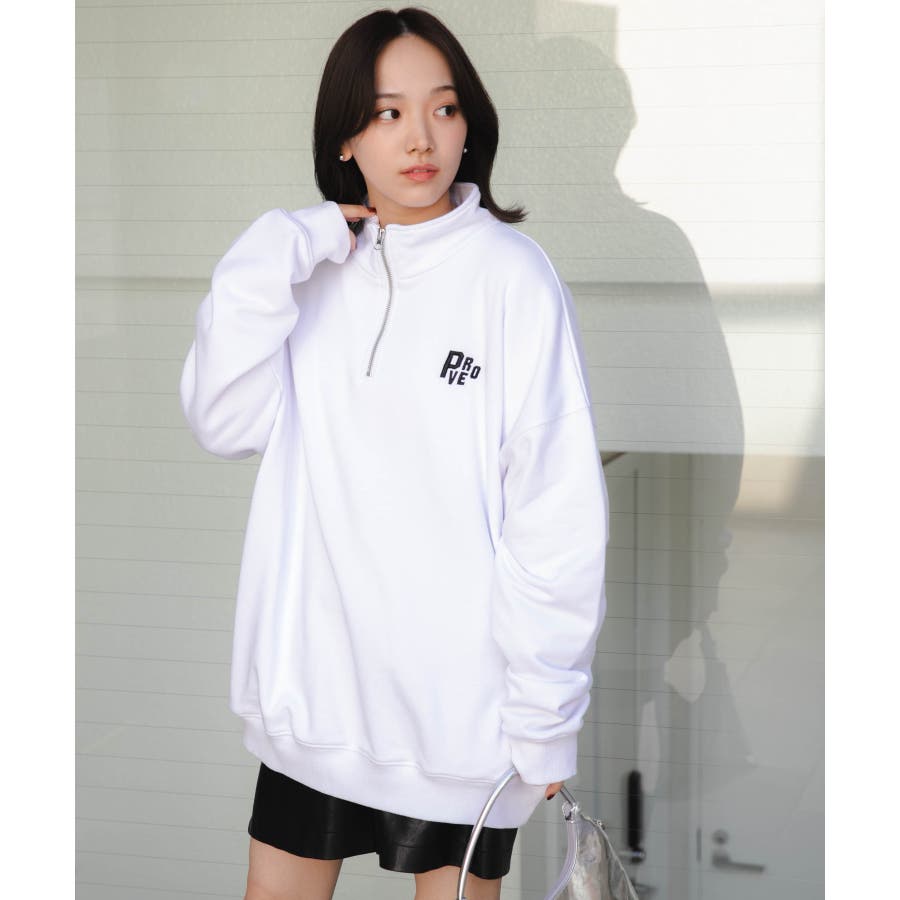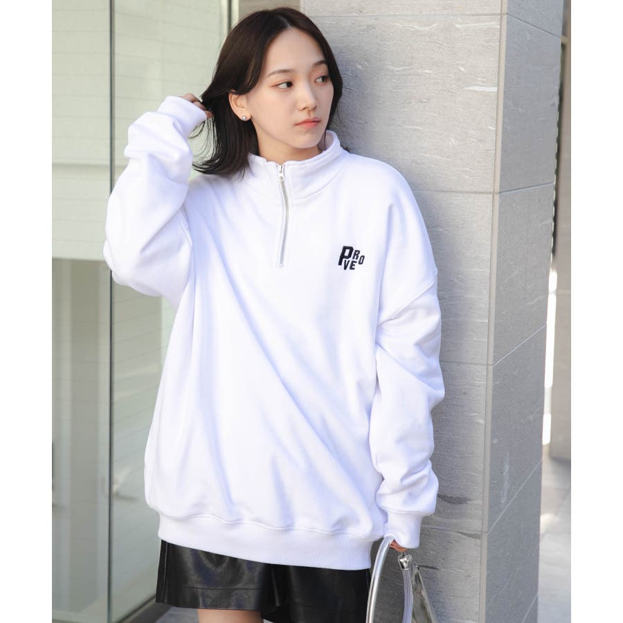 ハーフジップデザインに、オーバーサイズシルエットのトレンド感満載のトップスです。