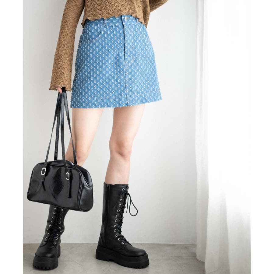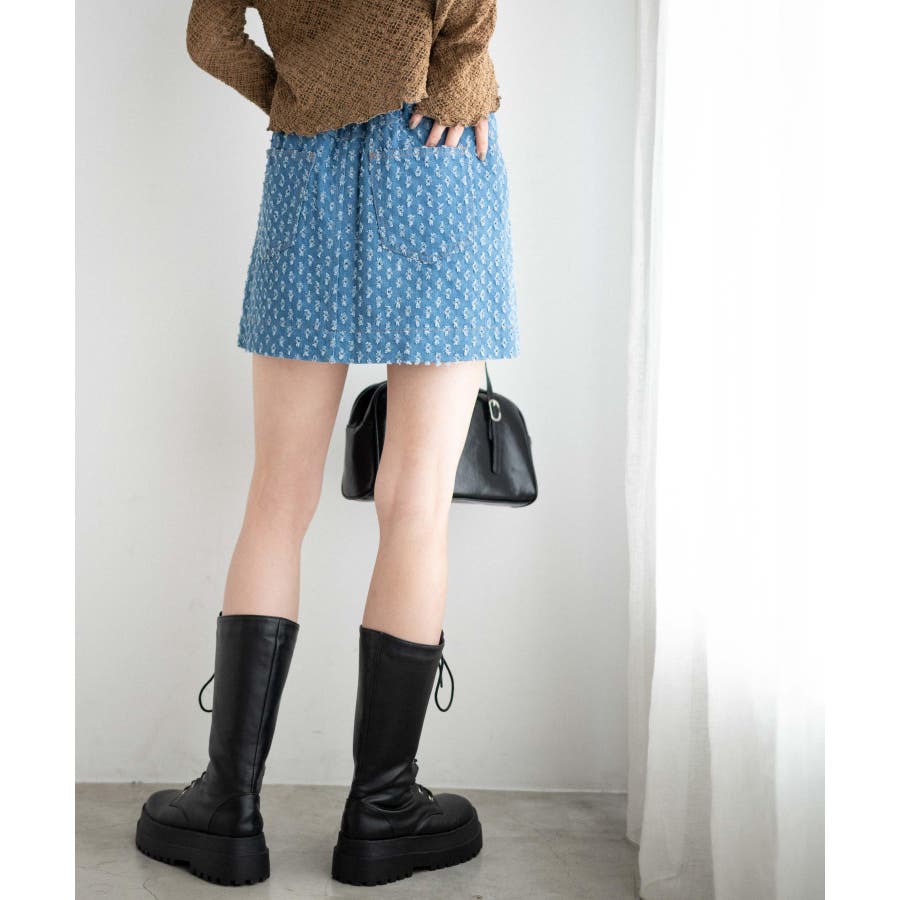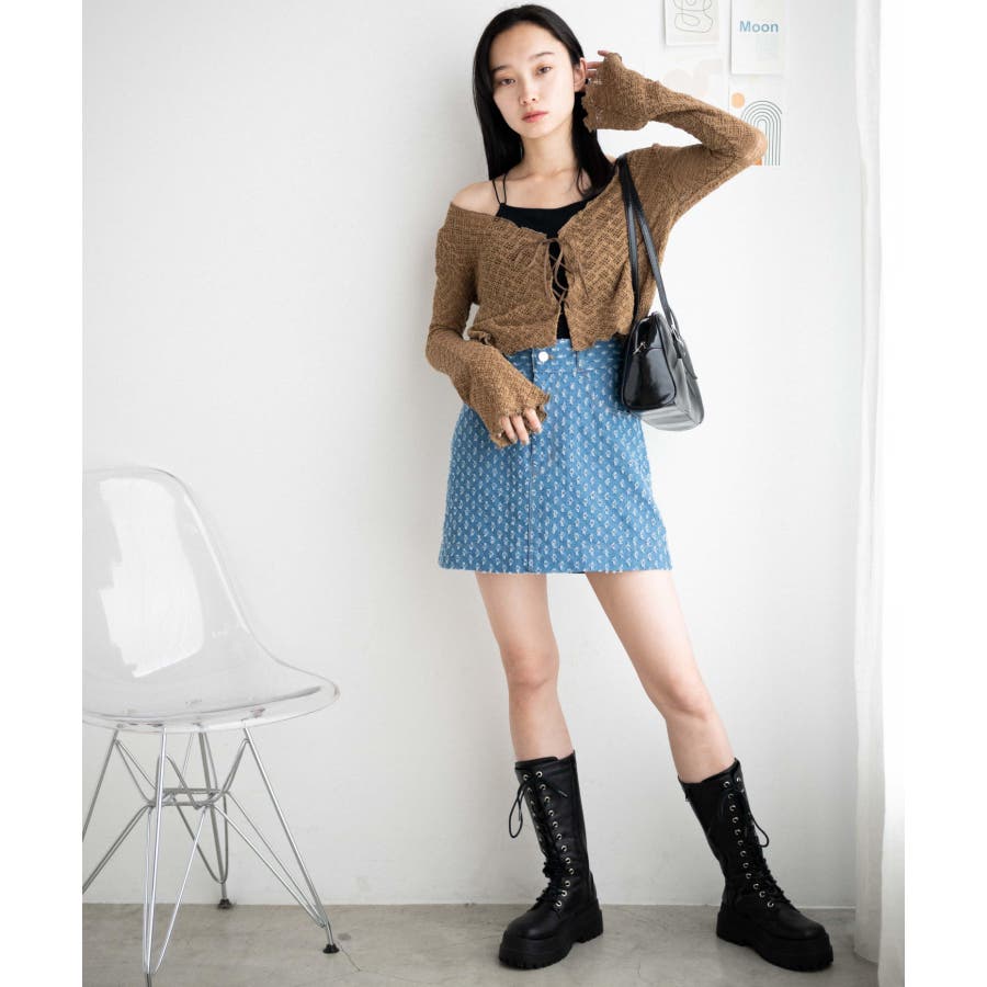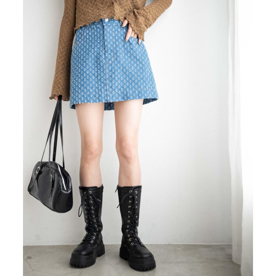 パンチングデニム台形ミニスカート レディース 春 夏 韓国 韓国ファッション 10代 20代 30代 40代 50代 WEGO ウィゴー ガーリー カジュアル フェミニン ギャル キャバ キャバ嬢 デート オシャレ スカート ミニスカート デニム
