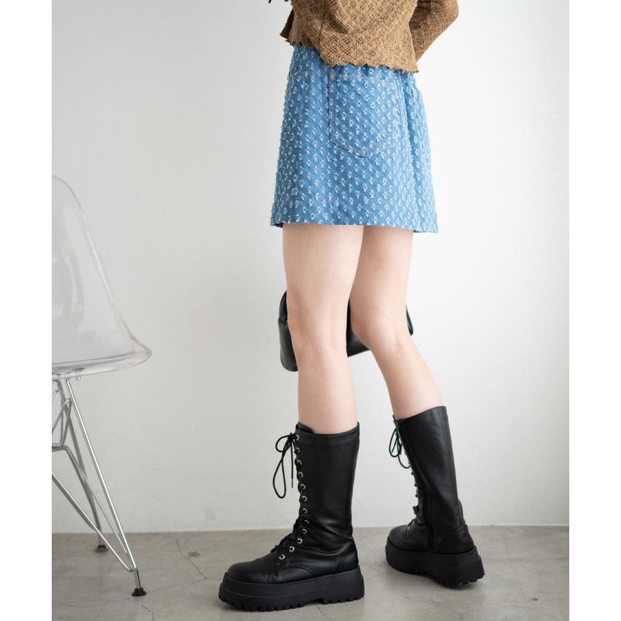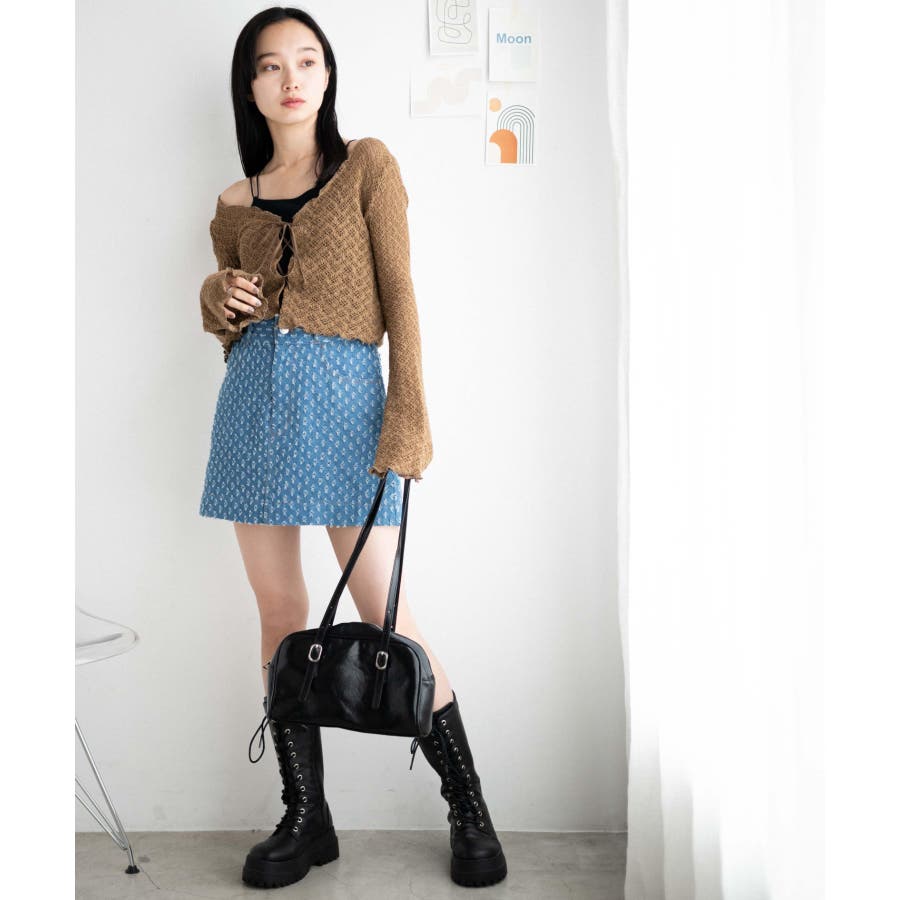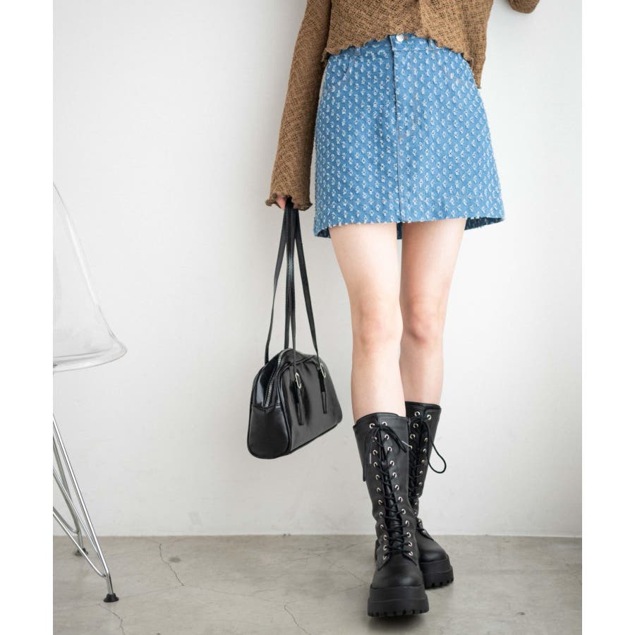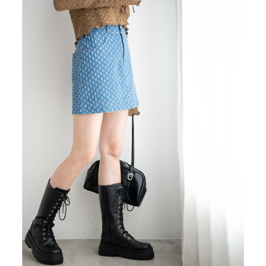 パンチングデニム台形ミニスカート レディース 春 夏 韓国 韓国ファッション 10代 20代 30代 40代 50代 WEGO ウィゴー ガーリー カジュアル フェミニン ギャル キャバ キャバ嬢 デート オシャレ スカート ミニスカート デニム