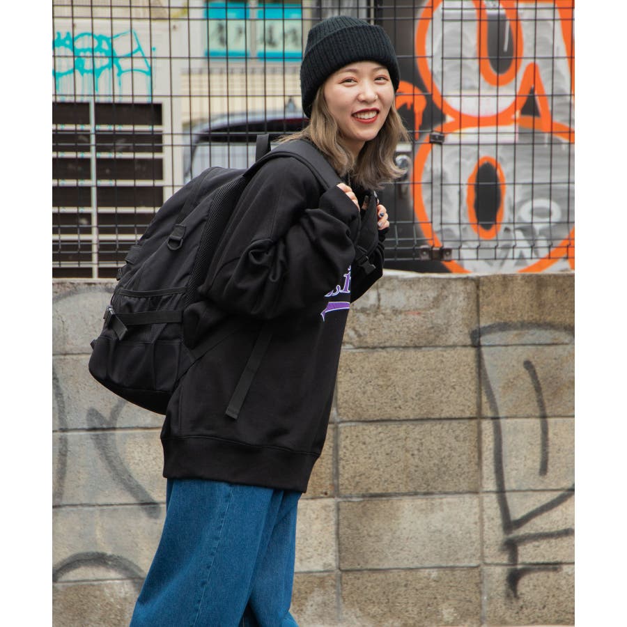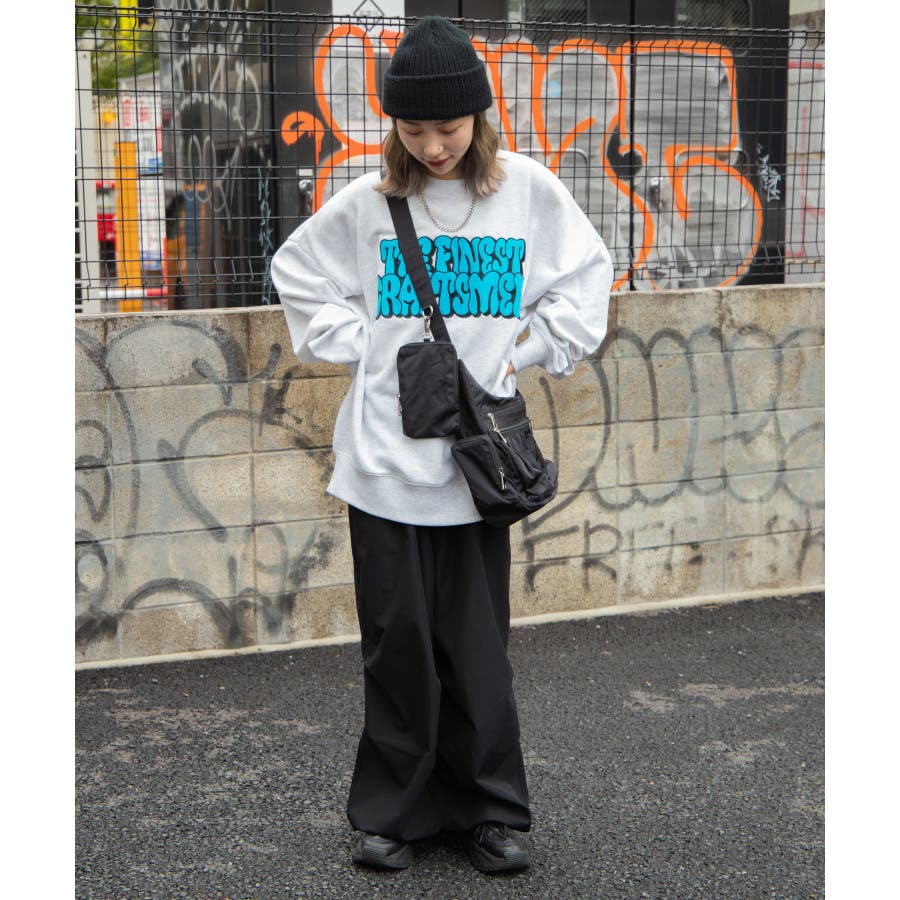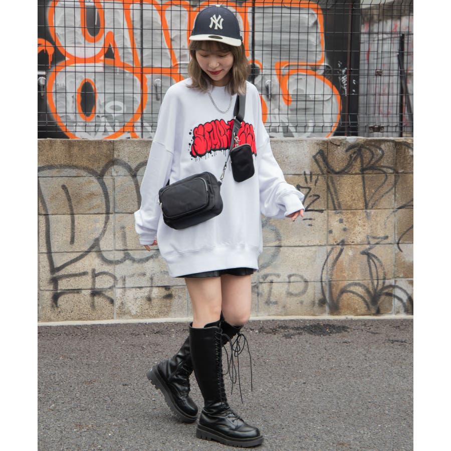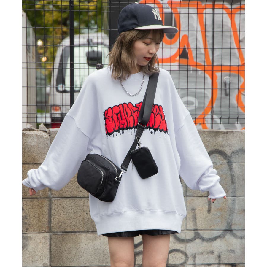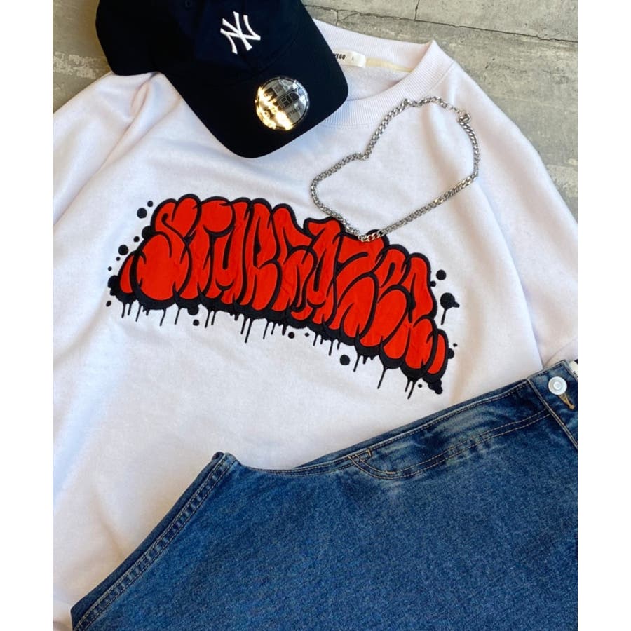 トレンドのグラフィティロゴが刺繍されており、1枚で旬なスタイリングが完成します。