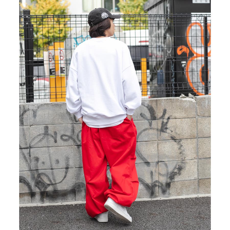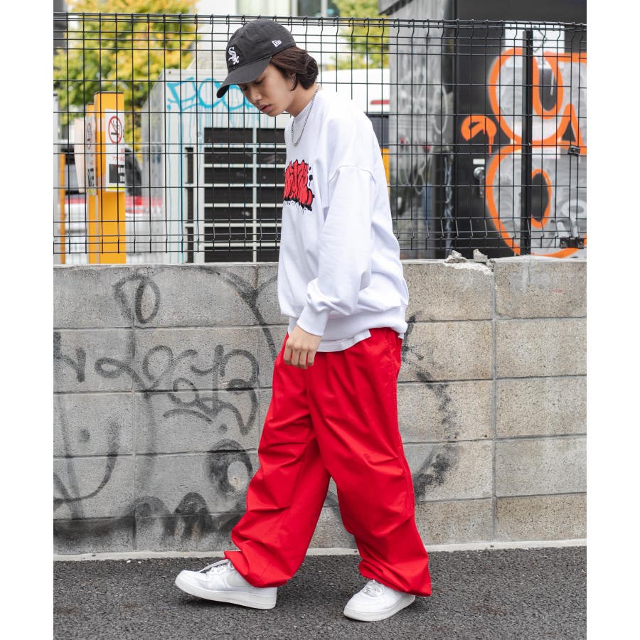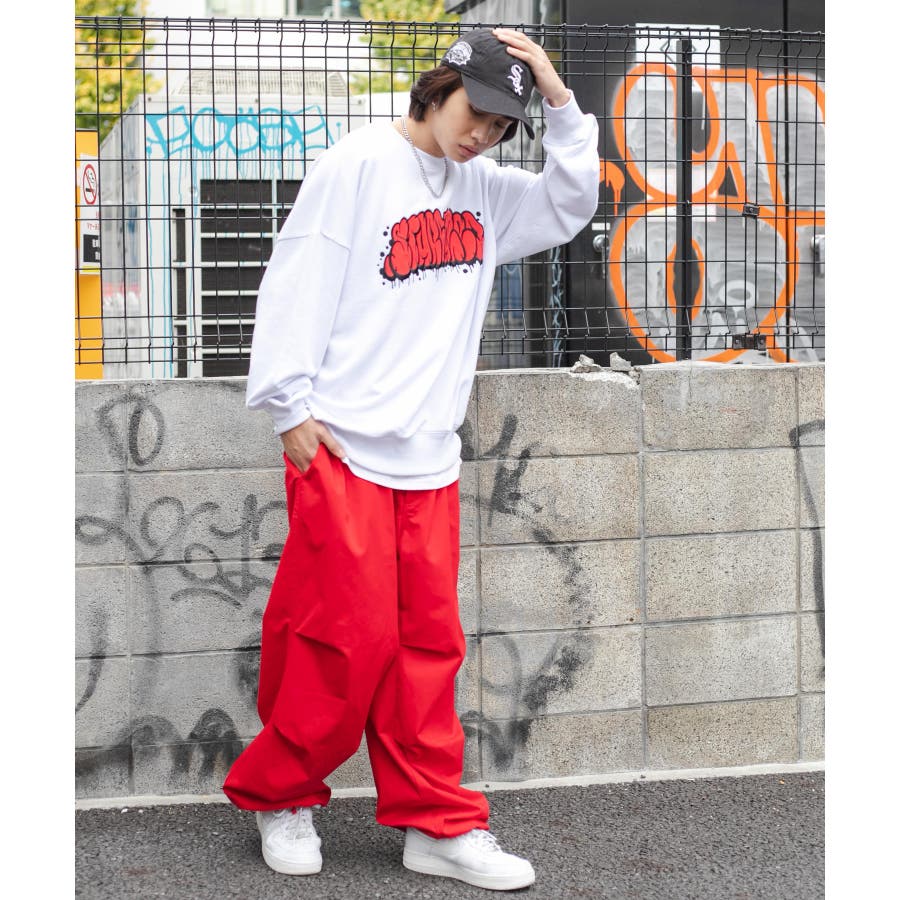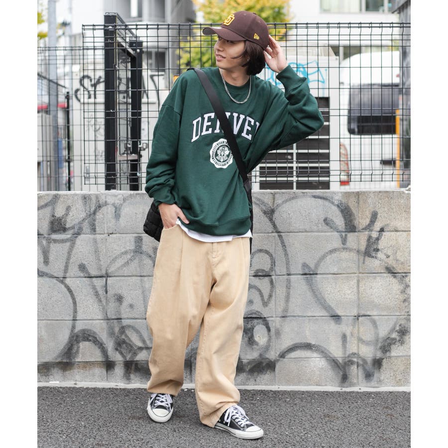 太めのデニムは勿論、チノパンツやカーゴパンツを合わせてストリートテイストがおすすめ◎