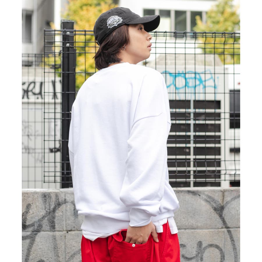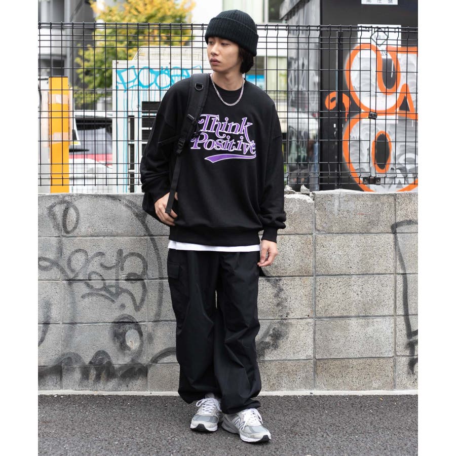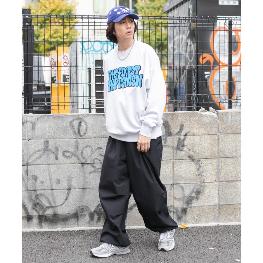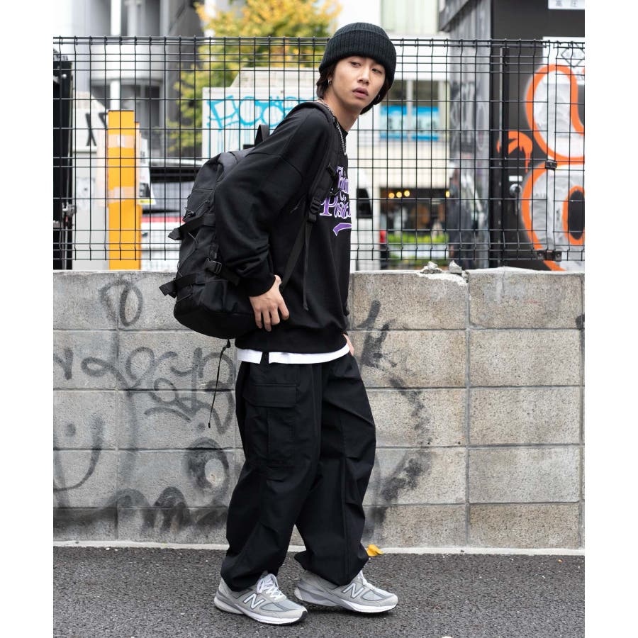 太めのデニムは勿論、チノパンツやカーゴパンツを合わせてストリートテイストがおすすめ◎