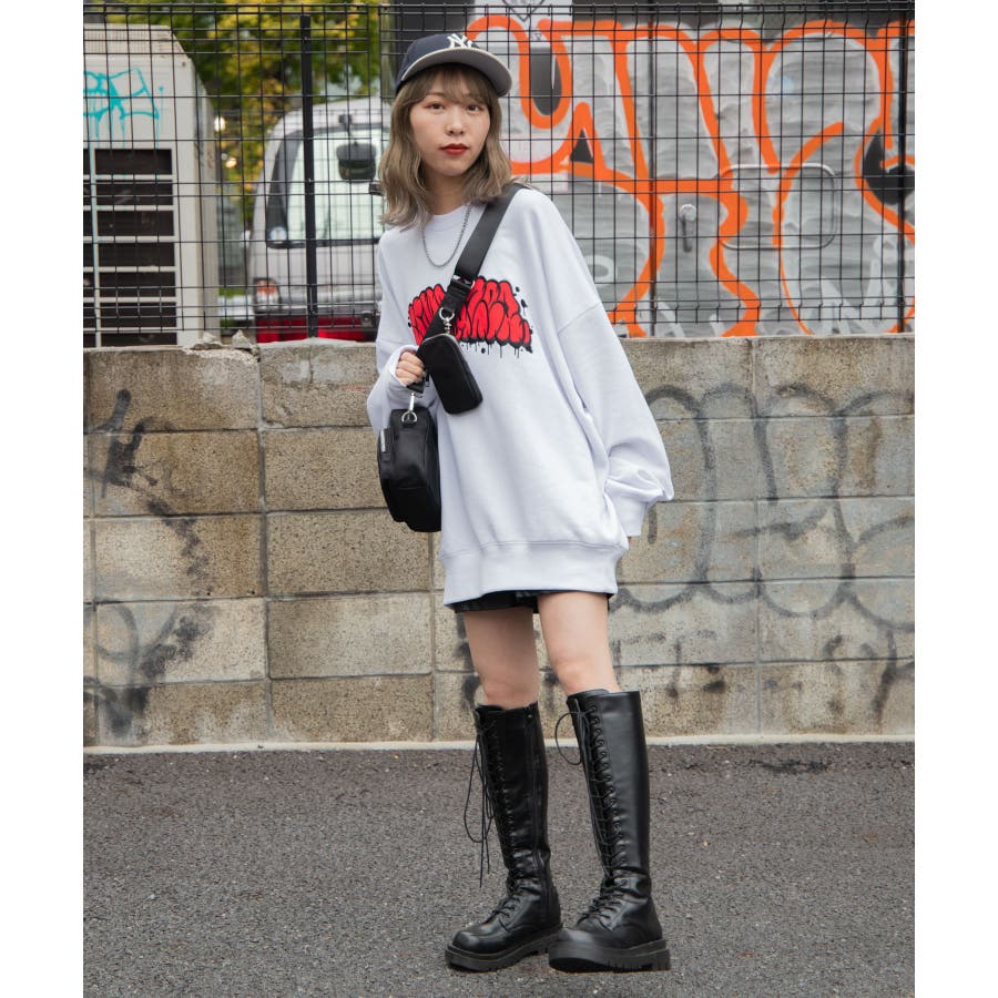アクセ付きグラフィックプルオーバー 韓国 韓国ファッション 秋 冬 秋冬 秋服 秋ファッション 冬服 服 長袖 スウェット トレーナー ストリート系 ストリート ビックシルエット オーバーサイズ