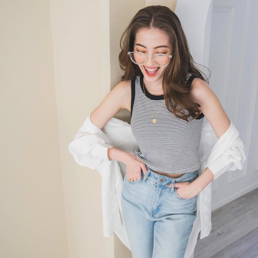 あえてローライズと合わせておへそ見せするのもかわいいです!
