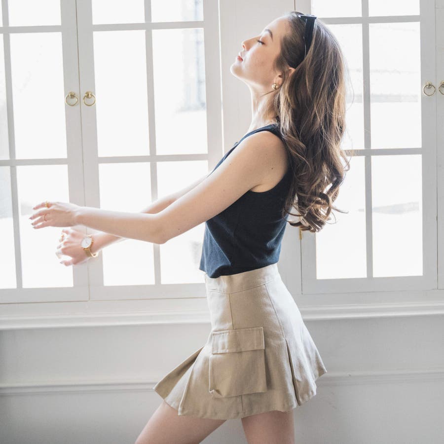 固くない伸びのある生地が体にフィットして1枚で安心感のあるアイテム◎