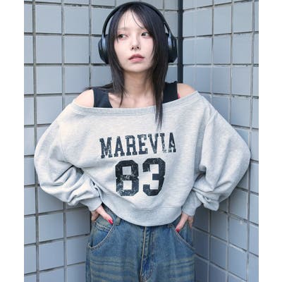 トレンド感たっぷりのオフショルデザインに、ドッキングで視線を惹きつけるショートスウェット。