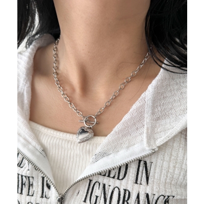 シンプルながらも太めのチェーンとマルテルデザインが、コーデのアクセントにぴったり。