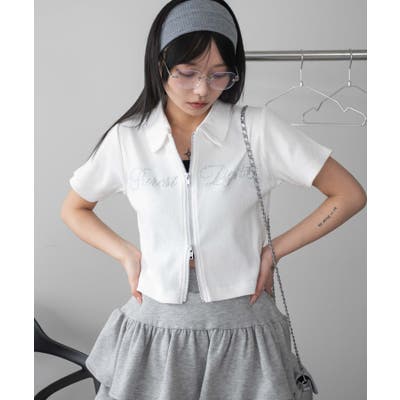 ラインストーンとフロントのダブルジップがポイントのトップス!
