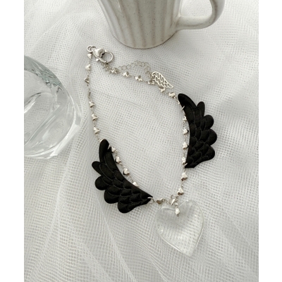 大きなモチーフハートと大きな羽のモチーフが合わさったネックレス。