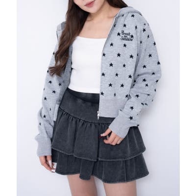 【レイヤード映え!韓国ムード 総柄ジャガードニットパーカー】