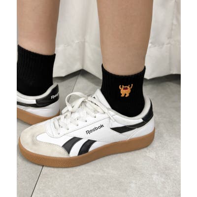 さりげなく入ったモンスター刺繍が可愛い、アンクル丈のパイルソックス。