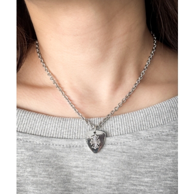 ギターピックをモチーフにしたトップが目を引く、ストリート感満載のネックレス。