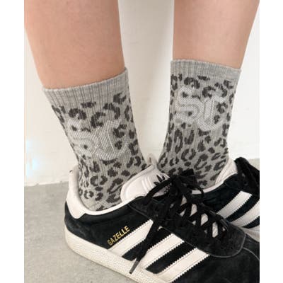 ラメ入りのロゴとレオパード柄を組み合わせた、足元を華やかに彩るレディースソックス。