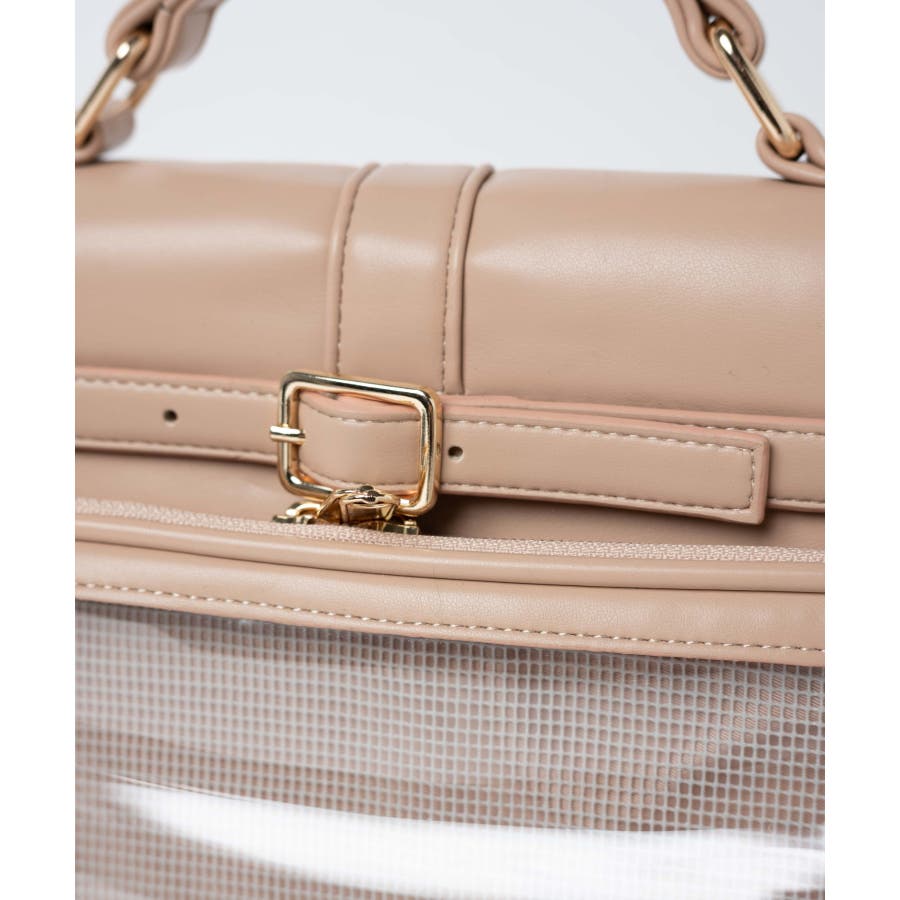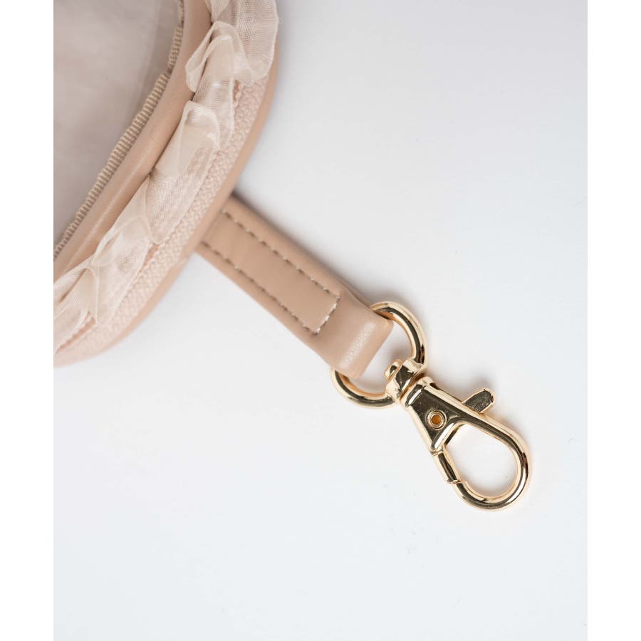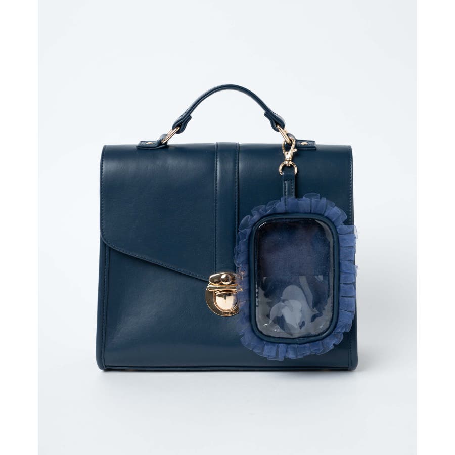 ベルト飾り、さらにクリア窓枠にはパール飾りとフレームカットのデザインを採用!