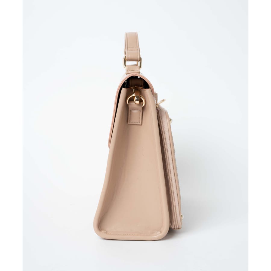 肌触りの良い選りすぐりのフェイクレザーで、上品なレターフラップデザインに仕上げました。