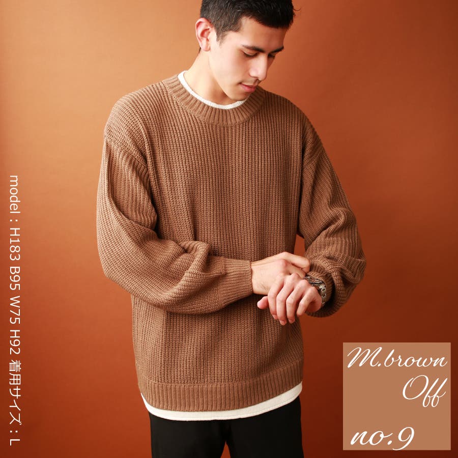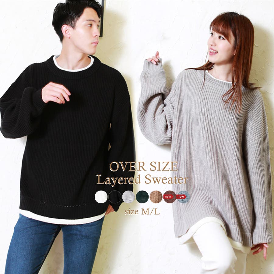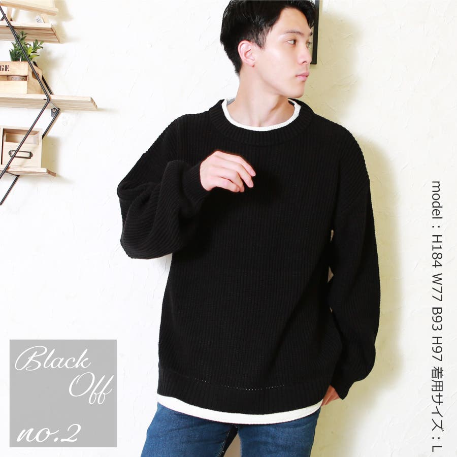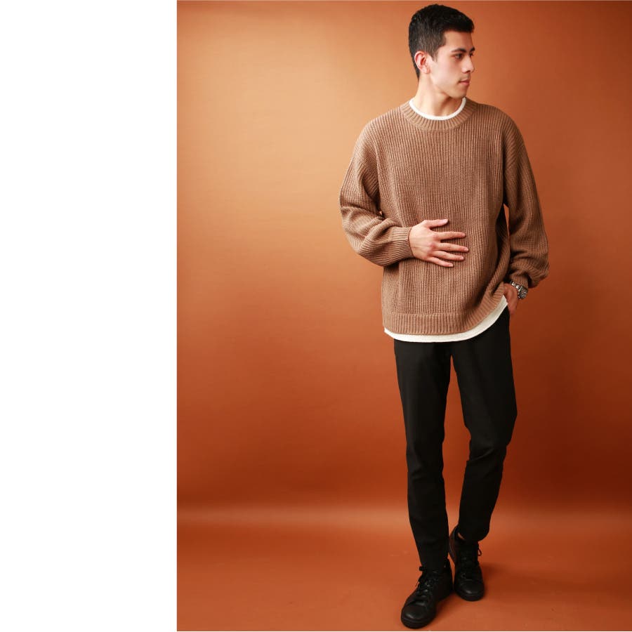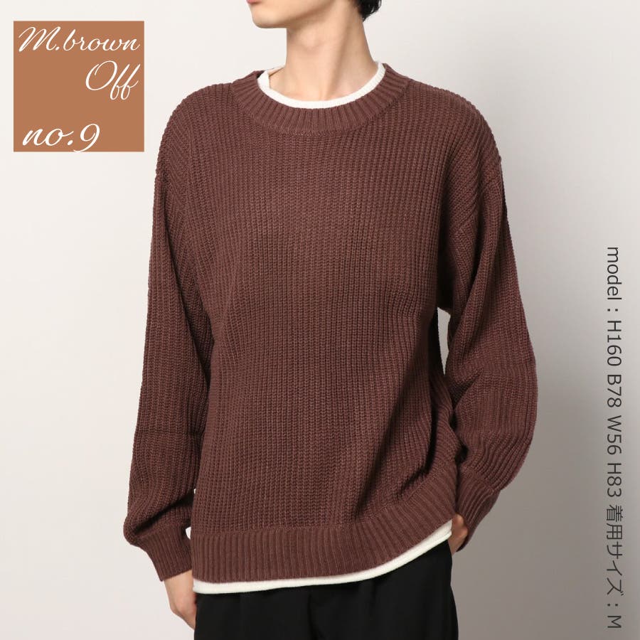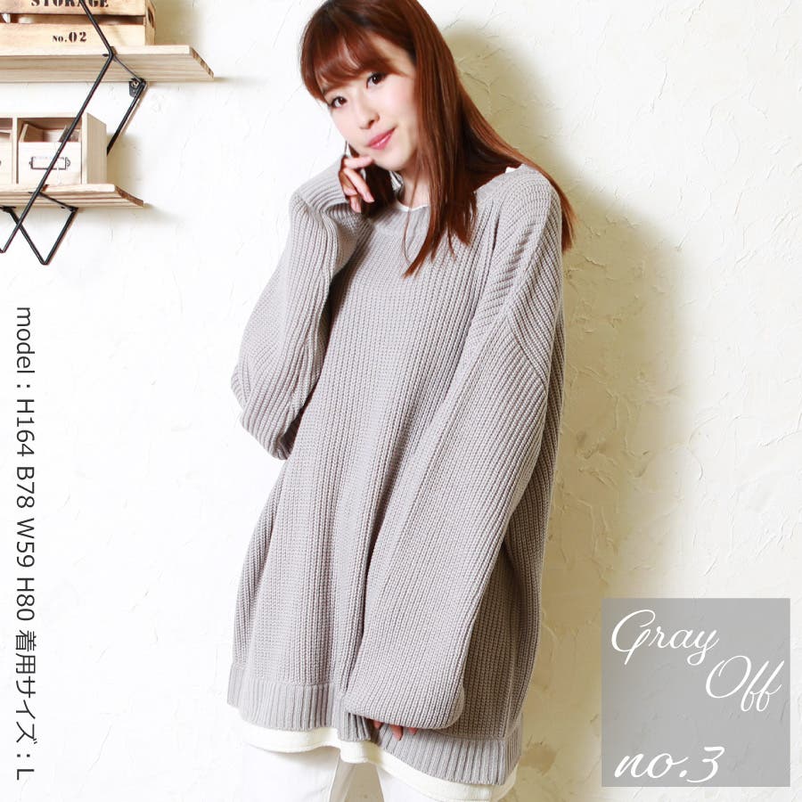 | ・セーター ・ミドル丈 ・ローゲージニット ・ビッグシルエット ・クルーネック ・長袖 ・リブ編み ・レイヤード風 | ||