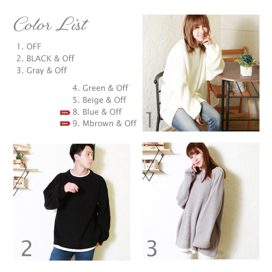 | 1.オフ 2.ブラック 3.ライトグレー 4.グリーン 5.ベージュ 8.ブルー 【NEW】 9.ブラウン 【NEW】 | ||