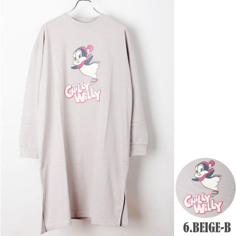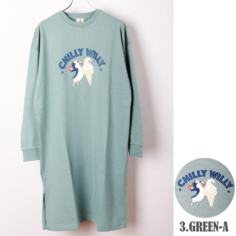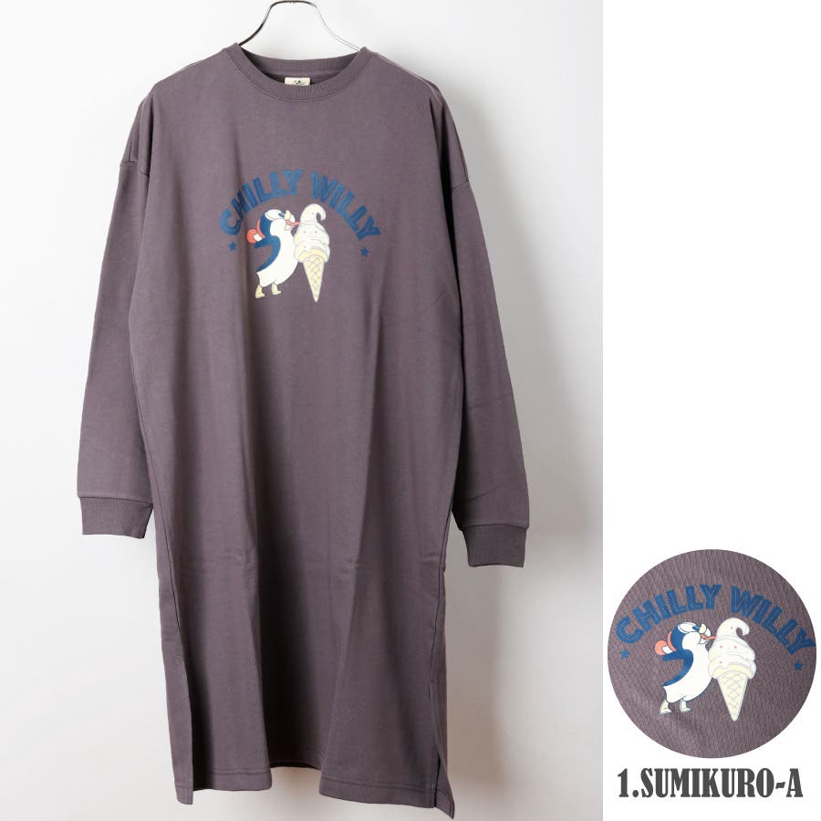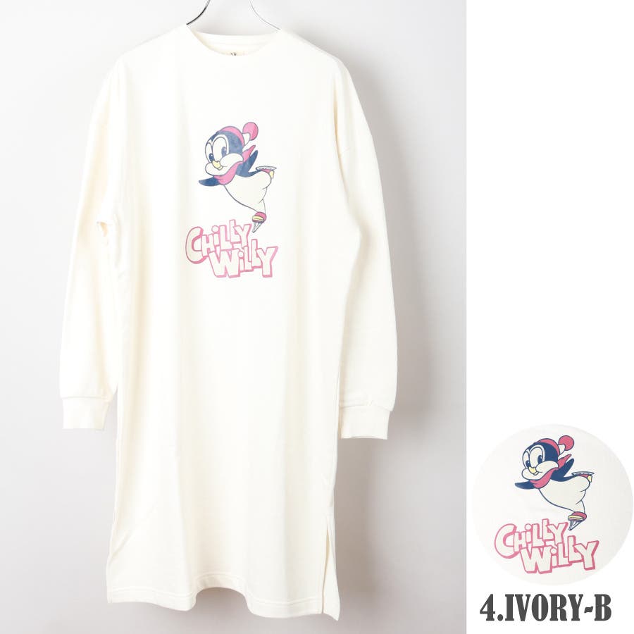 | 可愛らしいペンギンのキャラクター チリーウィリーのプリントワンピース チリーウィリーはペンギンにも関わらず寒がり。 いつも温かく暮らすにはどうすればいいかばかり考えている、ユニバーサル・ピクチャーズ作品のキャラクター。 アメコミテイストのトレーナーで可愛らしいさ抜群。 おいしそうにアイスを食べたり、楽しそうにスケートするチリーウィリーがプリントされたかわいいワンピース! 柔らかいソフト裏毛を使用してるので、薄地で軽い着心地なロングシーズン着用できます! レトロ感あるイラストやかすれプリントなどの技法で古着感をだしつつ、主張しすぎない色味でどんなコーデにもぴったりなワンピースです。 デザインを変えておそろコーデやリンクコーデなど、これでUSJにいくのもよし。 カラーはそれぞれのデザインに、ホワイト・スミクロ(黒)・ベージュ・モカブラウン・ミントグリーン・ブルーの6色展開。 ネット限定の商品です。 | |