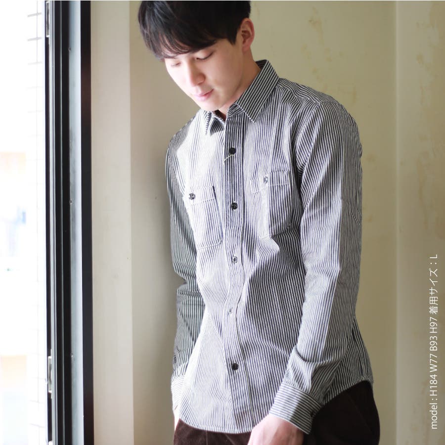 | ワークウェアの定番であるヒッコリーストライプ生地を使用した王道シャツ。 ヒッコリー素材は穿き続けていくにつれ、経年変化の味わいも出てきます。 洗濯を繰り返すことによる色落ちや擦れた雰囲気などが素敵な空気を醸し出すようになります。 デニムの一種ですから、汚れが目立ちにくいメリットもあります。 デザインではすっきりしたサイズと大きすぎない衿により、アメカジのみならず幅広いスタイルで使用できます。 こちらの商品は生地調達から縫製、仕上げまでの全工程を国内で行い、裁断、縫製、仕上げなど各分野の職人の技術が詰まった日本製製品になります。 | ||