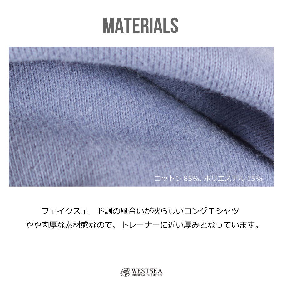 | フェイクスェード調の肉厚なスウェットロングTシャツ 【デザインの特徴】 フェイクスェード調の風合いが秋らしいロングTシャツ やや肉厚な素材感なので、トレーナーに近い厚みとなっています。 クルーネックにすることで、厚ぼったく見えてしまう首周りをすっきりと見せられます。 重ね着風のデザインで、キレカジからストリート系まで幅広いコーディネートのインナーとしておすすめです。 単品で着てもインナーに着ても映える一枚。 シンプルでスタンダードなデザインになっていて、トレンドに左右されづらく年齢や性別を問わず着用できるユニセックスデザインになっています。 すこし大きいサイズ感だから、オーバーサイズデザインとしてレディースも着用可能です! | ||