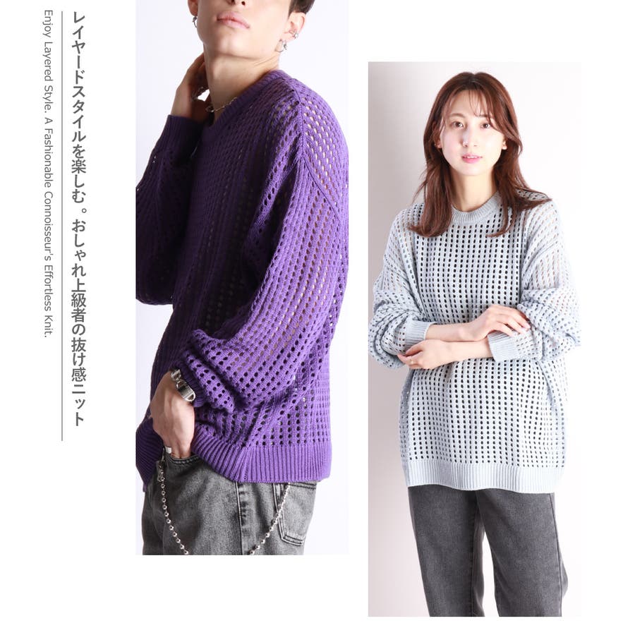 メッシュオーバーサイズクルーセーター(長袖) メンズ レディース