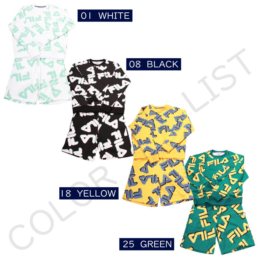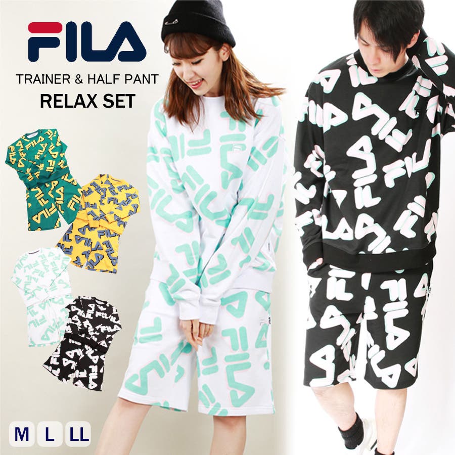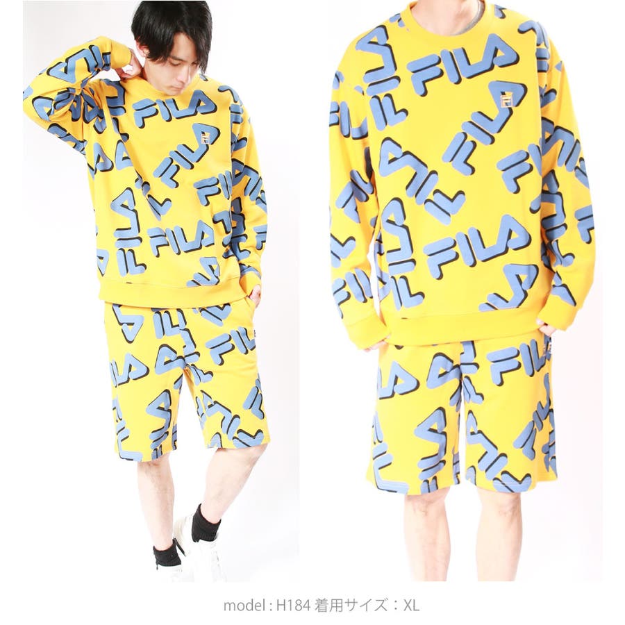 | 【FILA】フィラ 総柄の長袖トレーナーとハーフパンツの上下セットアップです。 全体にFILAのロゴが散りばめられた可愛くて印象的な総柄の長袖トレーナーとハーフパンツです。 タイト過ぎない絶妙に計算されたサイズ感なので野暮ったく見えず、締め付け感なくストレスフリーな着心地。 ジム、ランニング等のトレーニングウェアだけでなくルームウェアしても活躍します。 メンズ、レディースともに着用できるユニセックスモデルで、イベントやフェスでのカップルコーデ、友達同士のペアコーデにもおすすめです。 カラー展開はホワイト(白)・ブラック(黒)・イエロー・グリーンの4色展開。 | ||