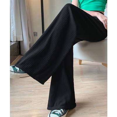 レディースボトムス 韓国 ストレートパンツ ロングパンツ ウエストゴム カジュアル フェミニンおしゃれ デート服春夏秋