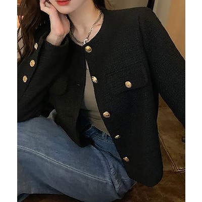 デイリーにも使えるノーカラーツイードジャケット