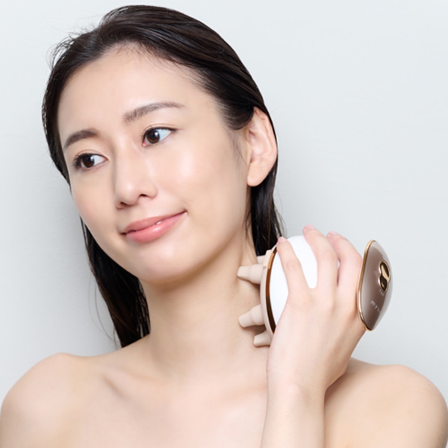 人の指をイメージしたアタッチメントも付属で、頭皮やお肌をもみ出します。