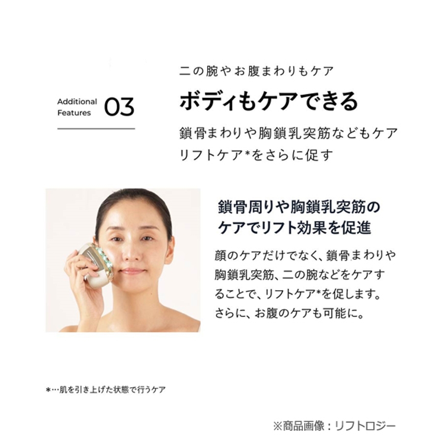 顔のケアだけでなく、鎖骨まわりや胸鎖乳突筋、二の腕などをケアすることで、顔まわりのリフトケア(※1)を促します。