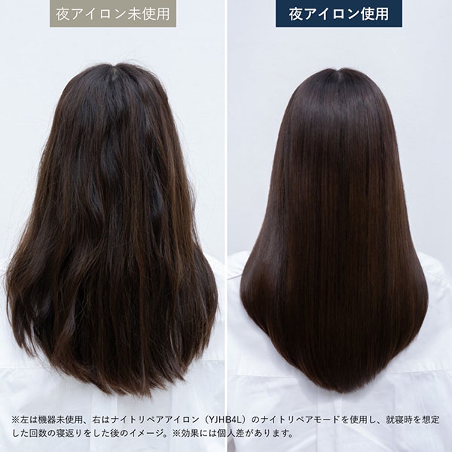 お風呂で使用する浸透トリートメントと朝のスタイリングアイロンに加え、ヘアドライ後、就寝前に使う「ナイトリペアモード」を搭載した全く新しい概念のヘアアイロン。