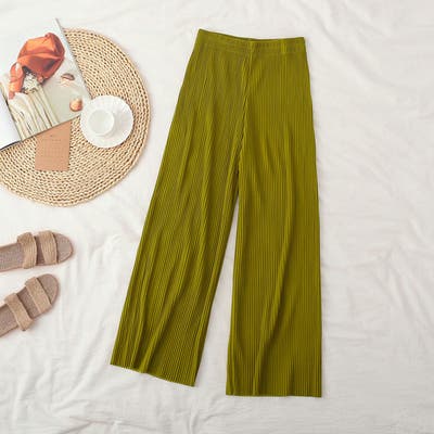 | ・軽くてしなやかな生地感の上品なプリーツ ・綺麗な落ち感でルーズな履き心地 ・ウエストがゴムなので伸縮性あり |