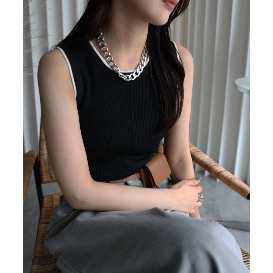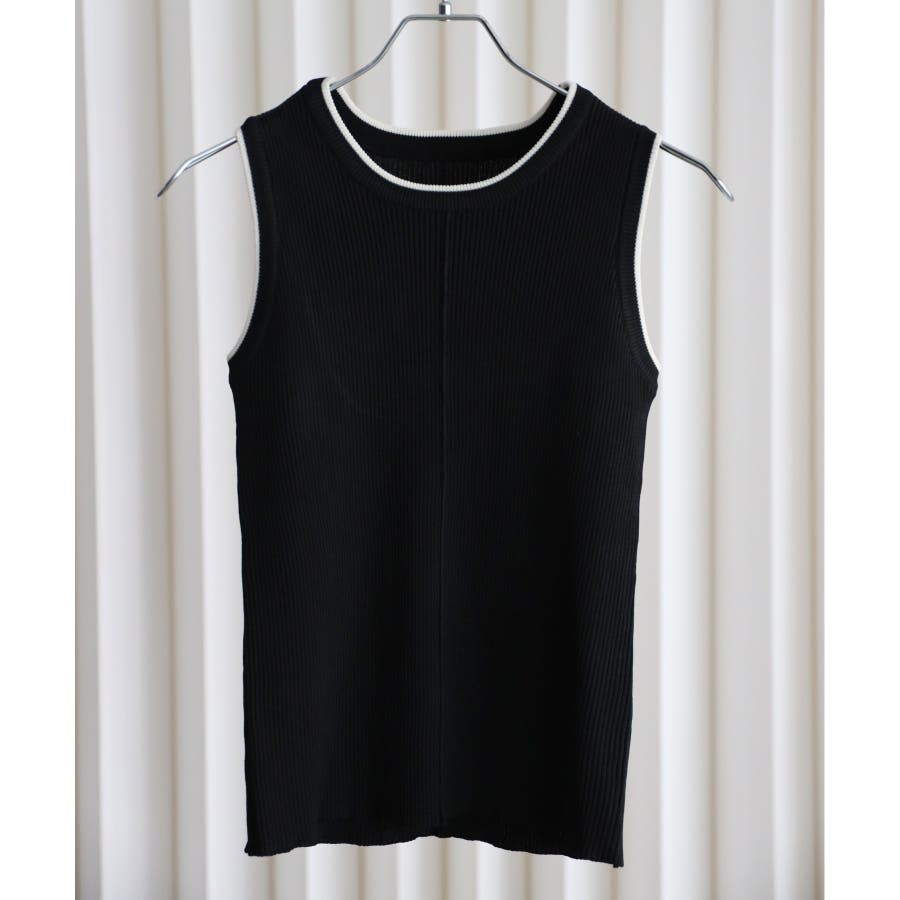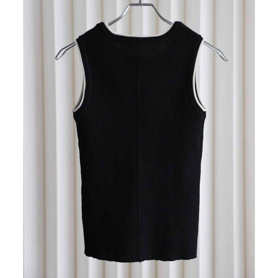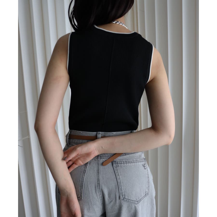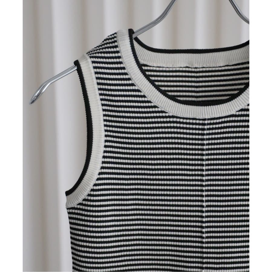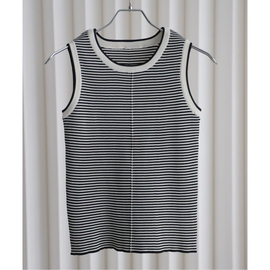 リンガー配色ラインニットタンク