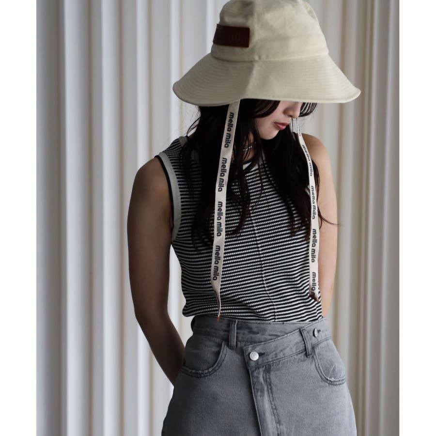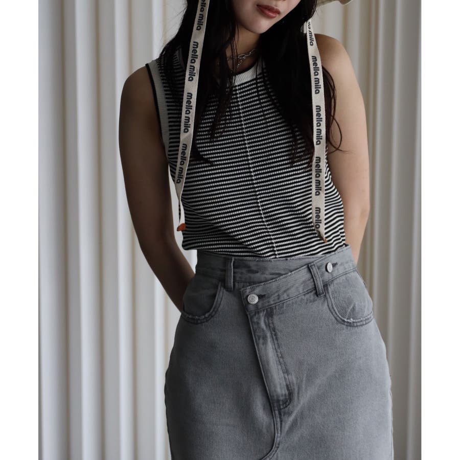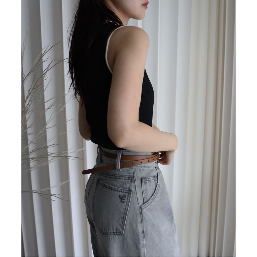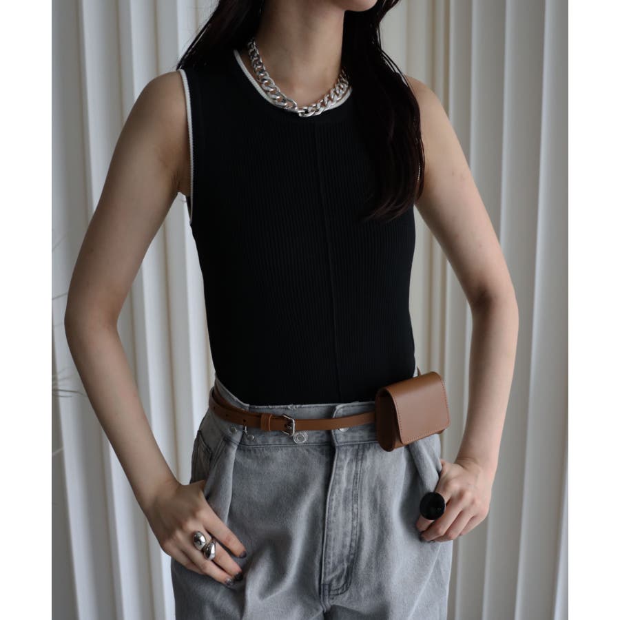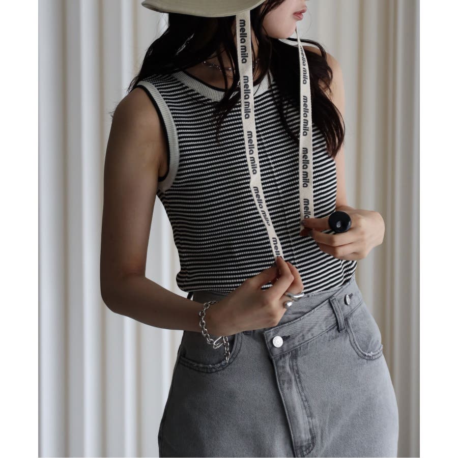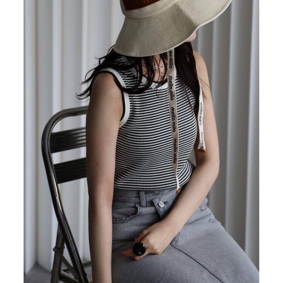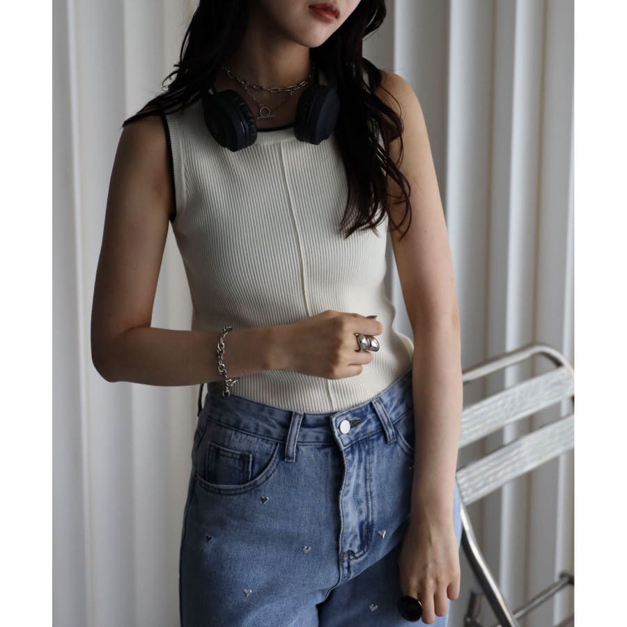 リンガー配色ラインニットタンク