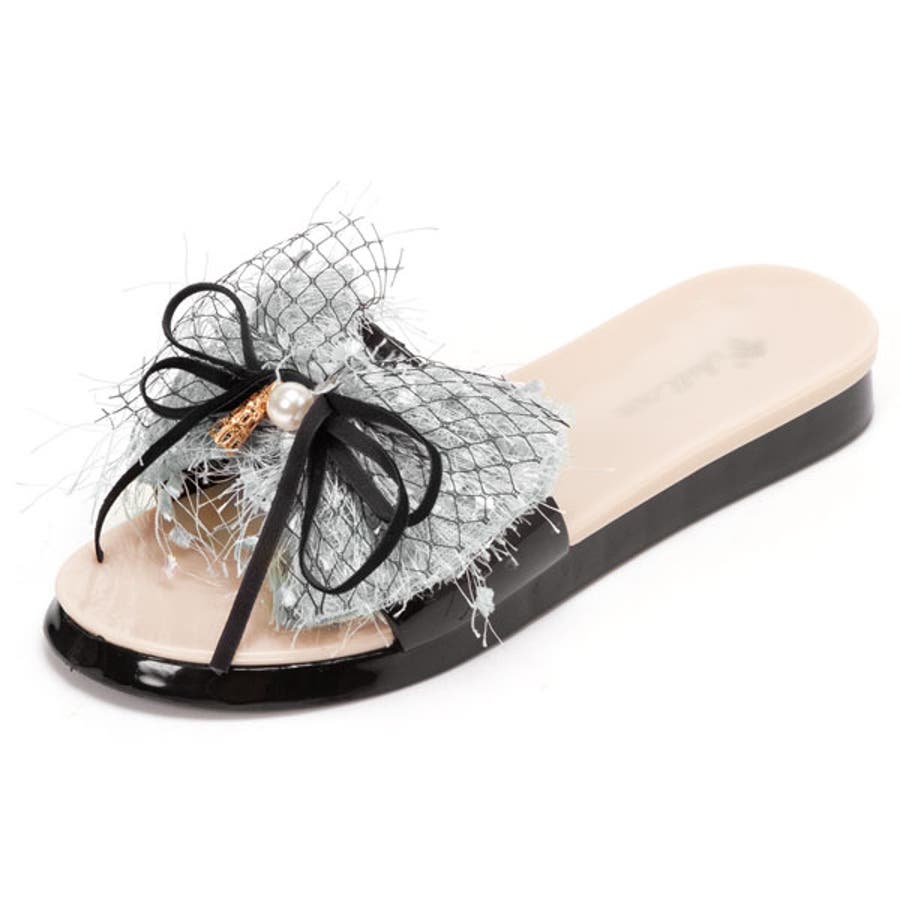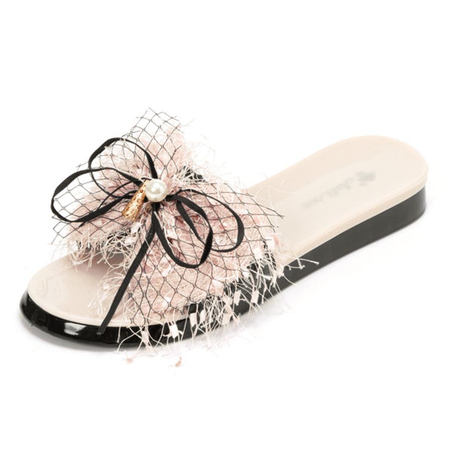 たっぷりなチュールレース&パーツでデコレーションしたサンダルです。