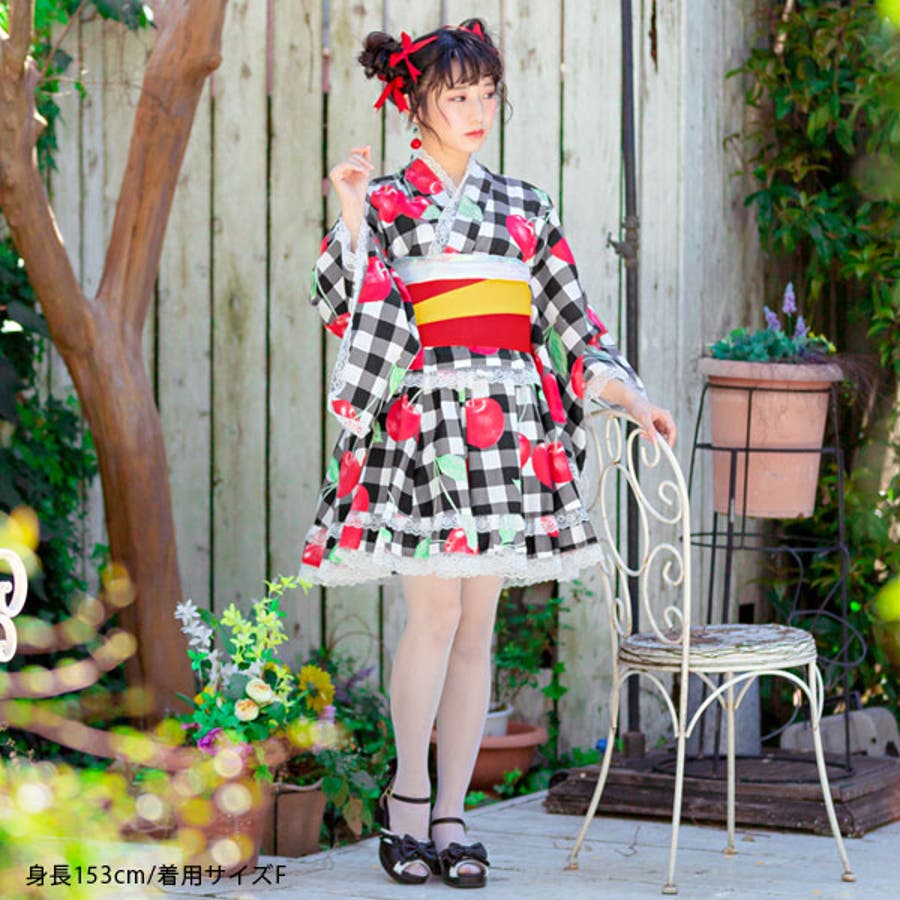 浴衣 ギンガム チェリー柄