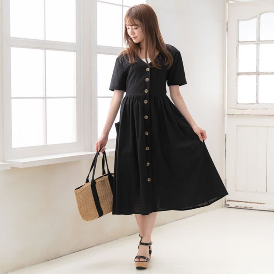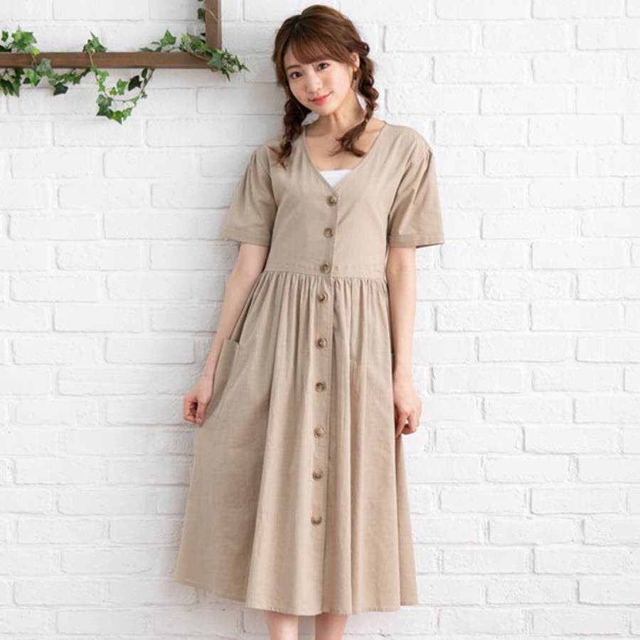コットン100%の麻風の素材で夏らしい大人カジュアルなフロントボタンワンピースです。