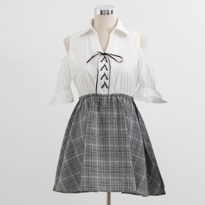 バストレースアップフレア袖フレアミニワンピース 韓国 夢展望